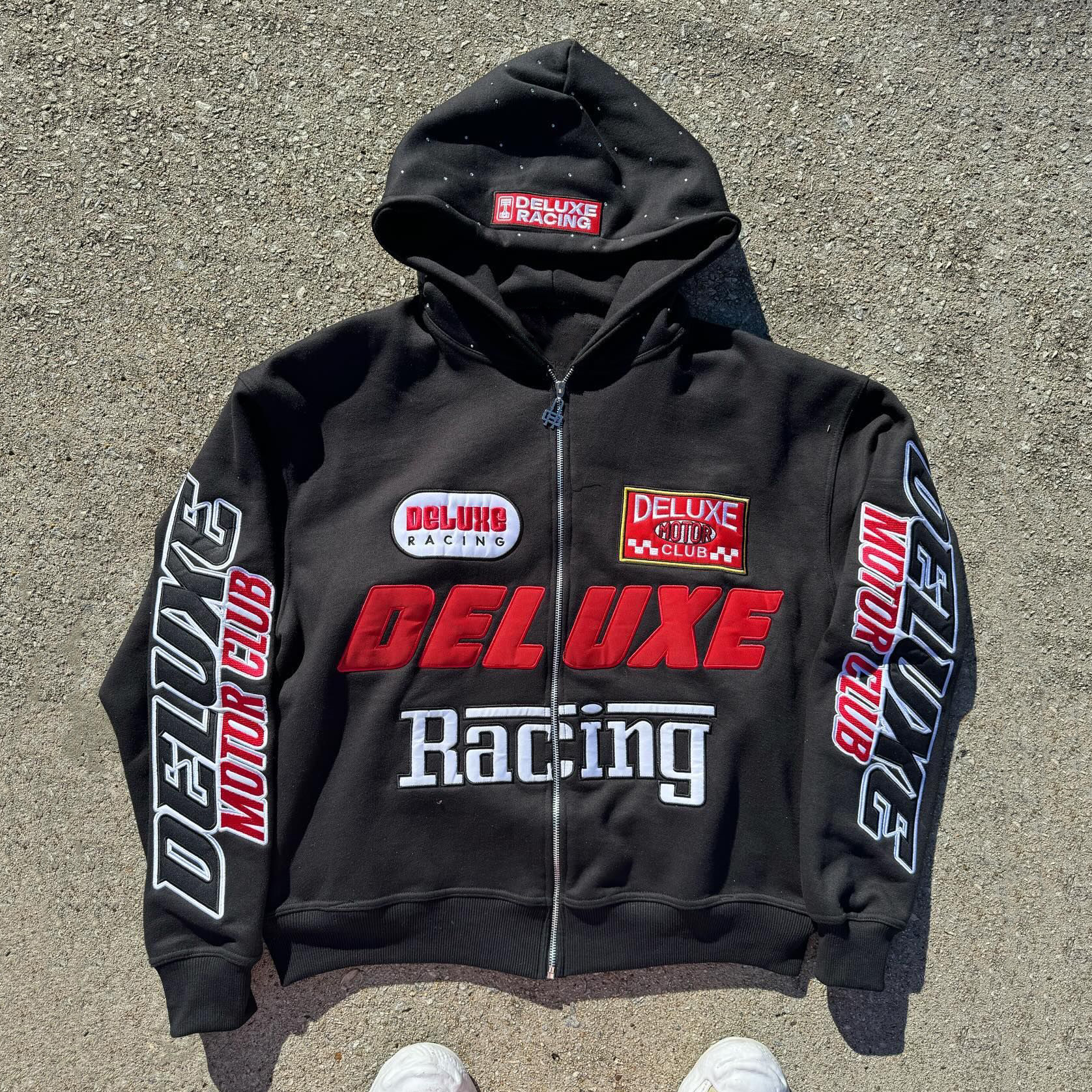 Monochrome Embroidered Full Zip Hoodie
