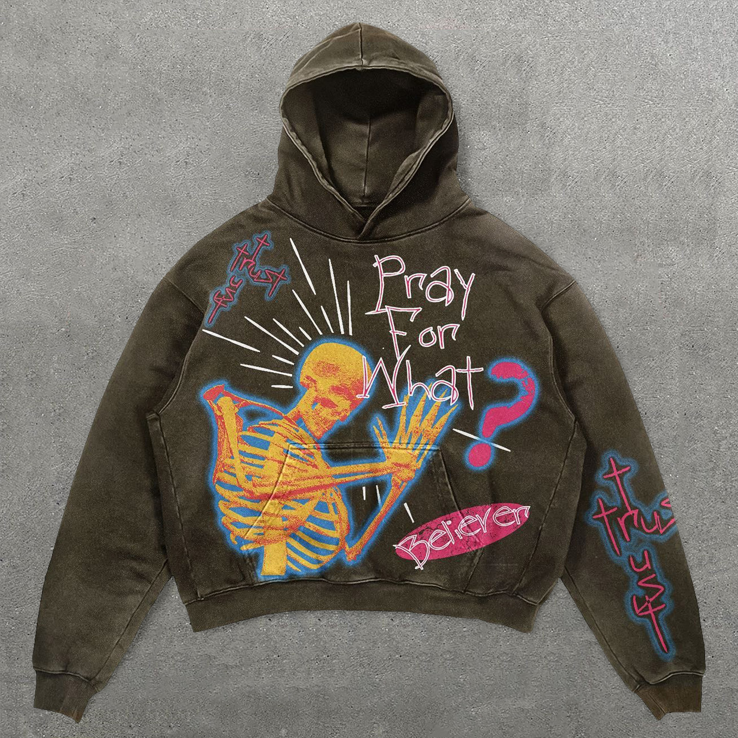 Pray For What Print Long Sleeve Hoodies