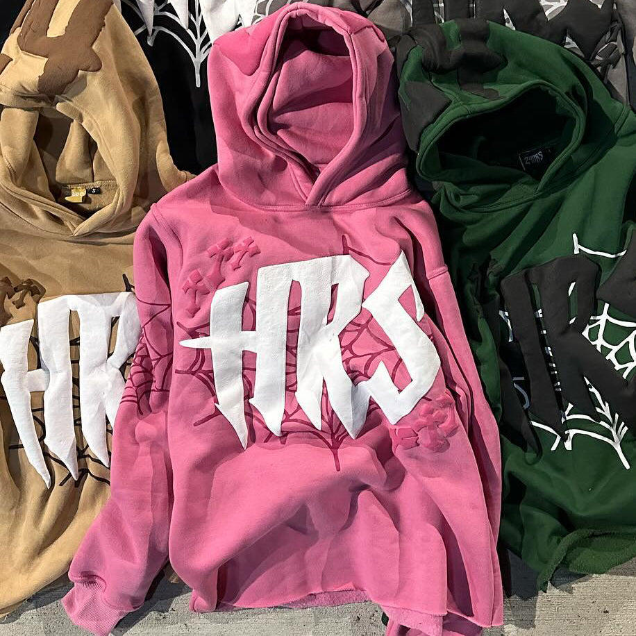 Spider Web Bubble Print Long Sleeve Hoodies