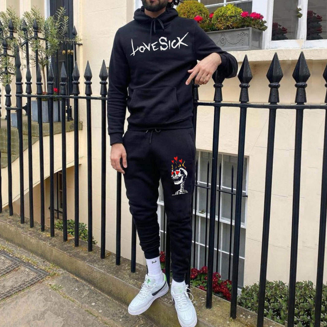 Casual Lovesick Print Hoodie And Pants Two Piece Set