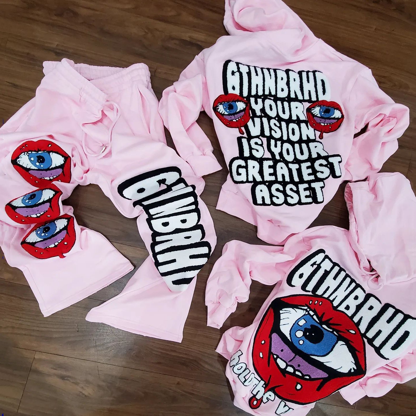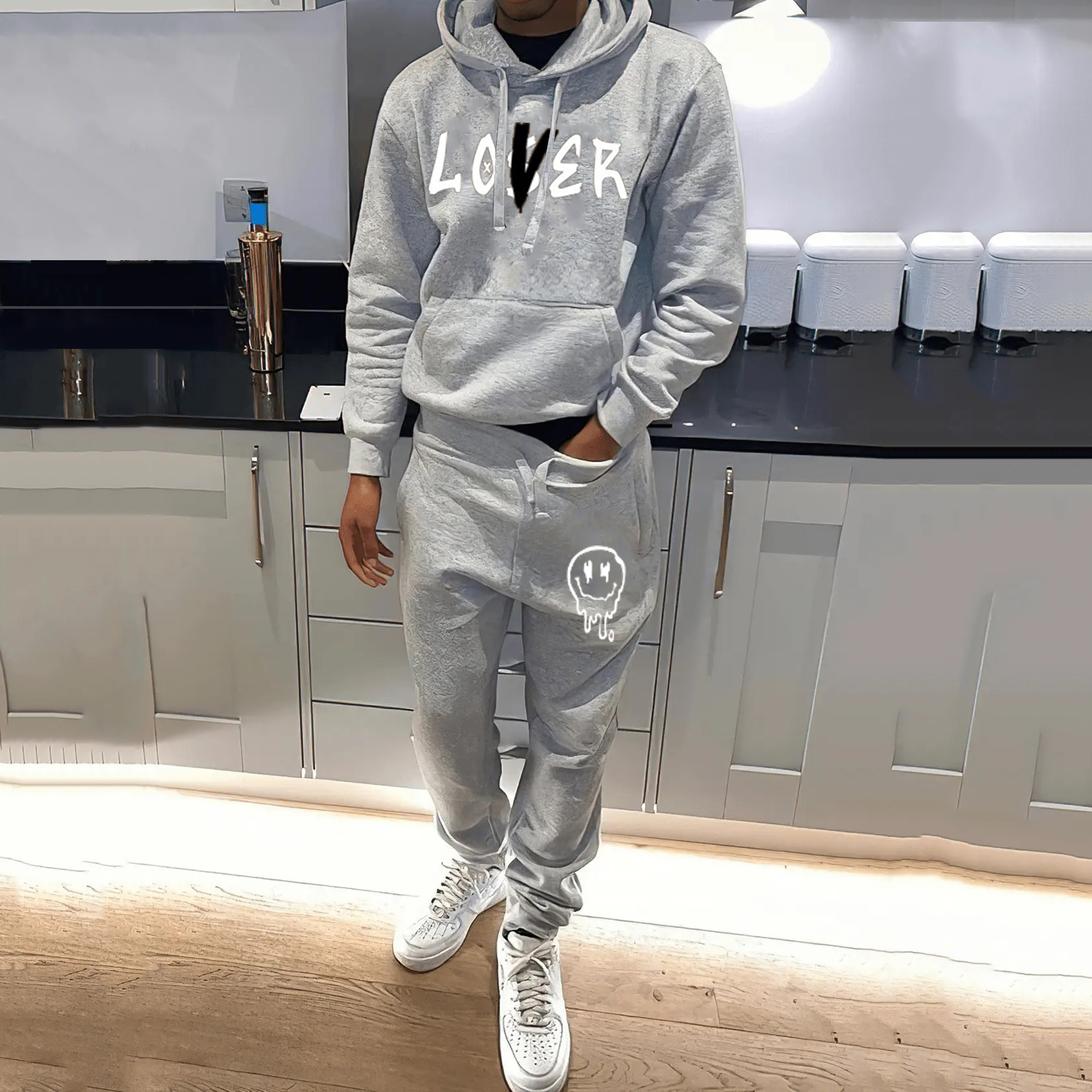 Stylish casual preppy graphic hoodie set