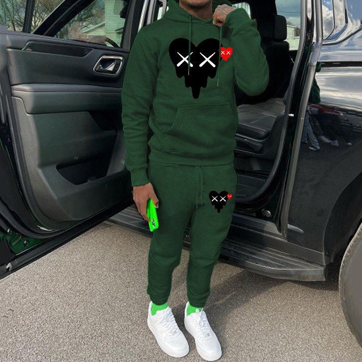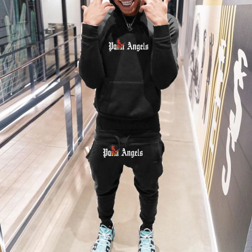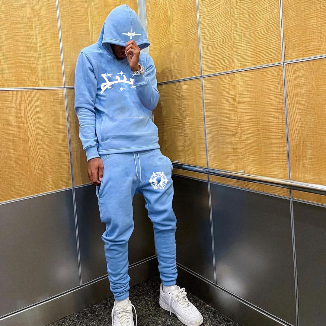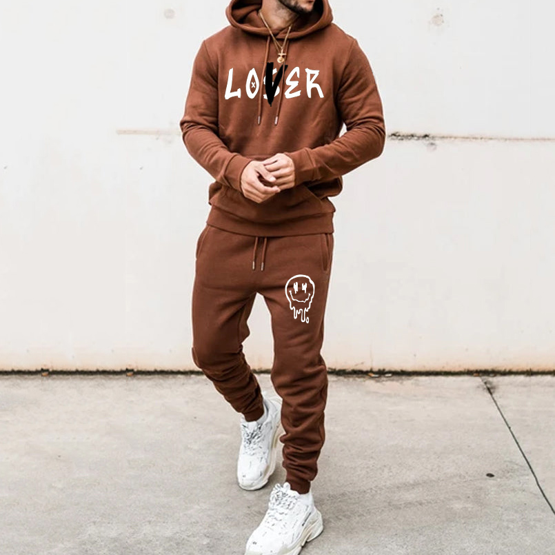 Fashion Simple Print Hoodie Sweatpants Two Piece Set