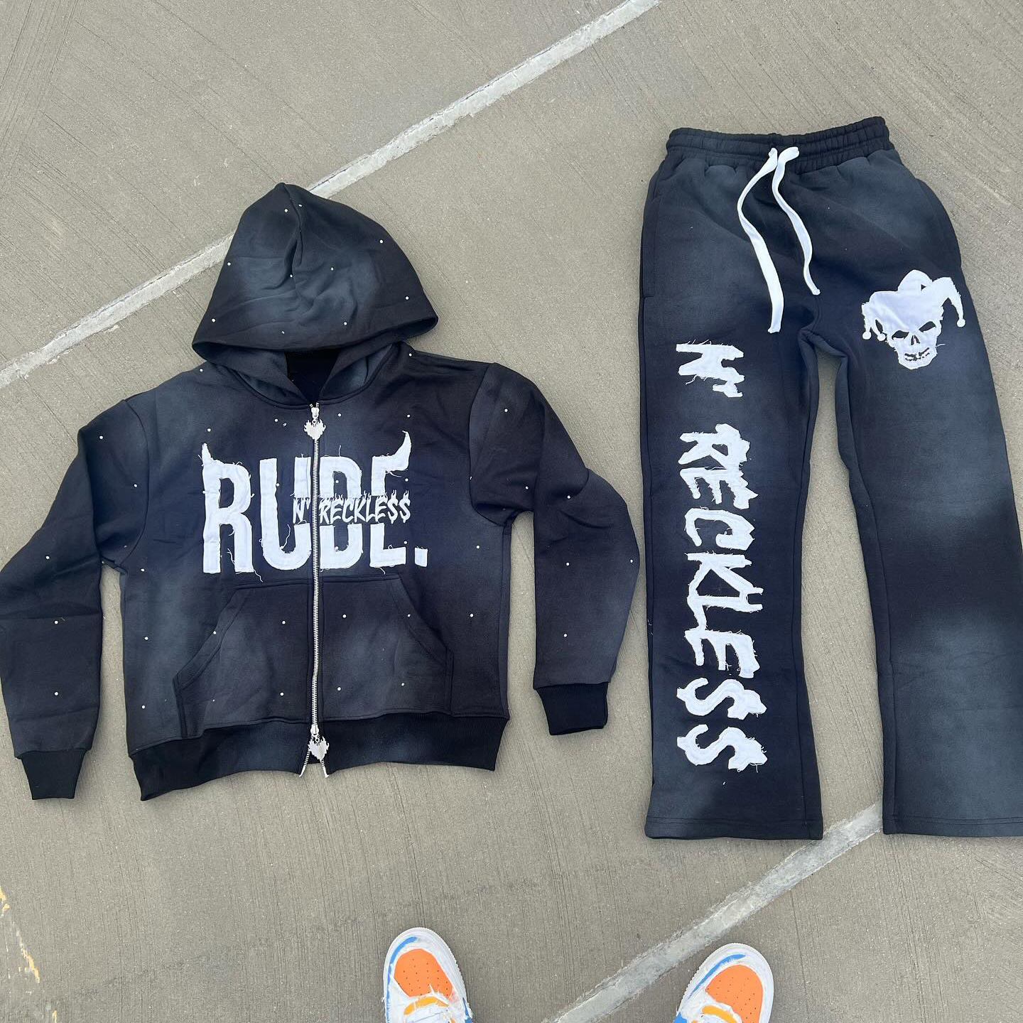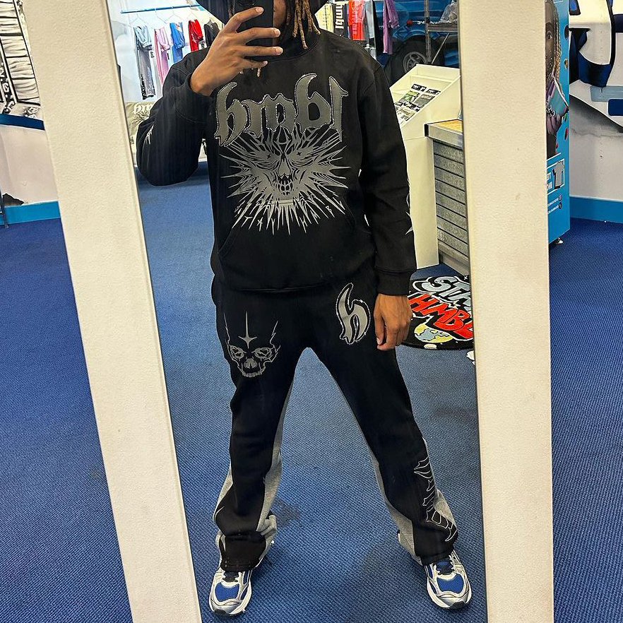 Devil casual street zip-up hoodie trousers two-piece set