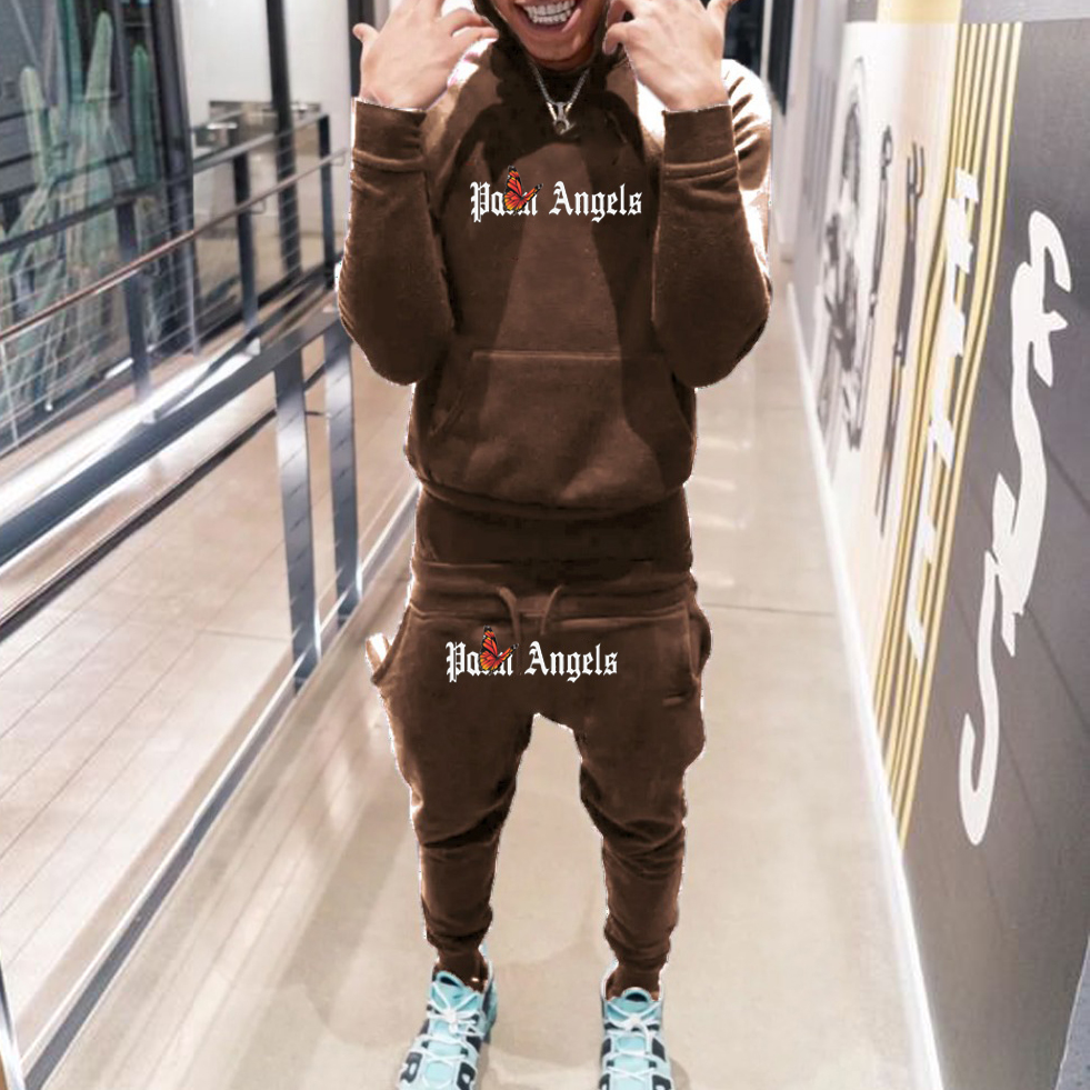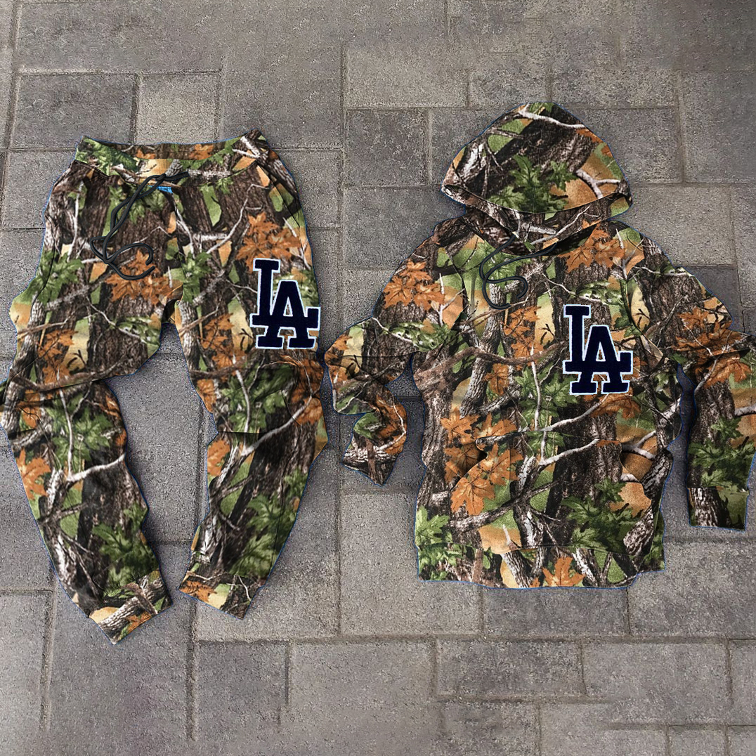 Trendy brand retro LA forest print hoodie two-piece set