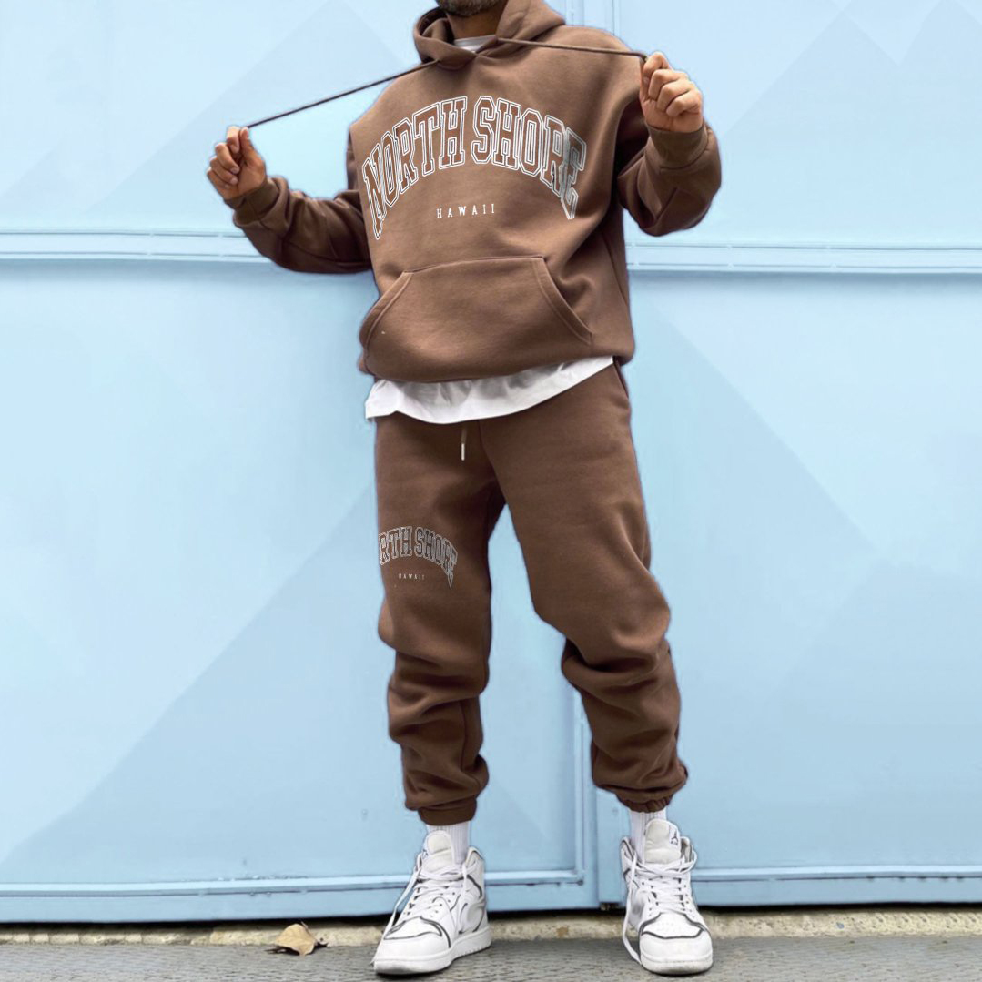 Casual North Shore Print Hoodie And Pants Two Piece Set