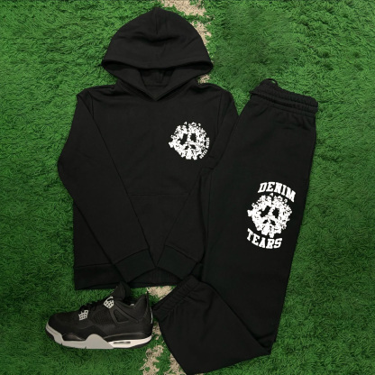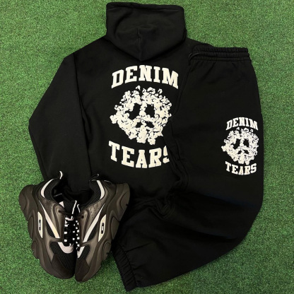 Letter Plum Blossom Print Two Piece Hoodie Set