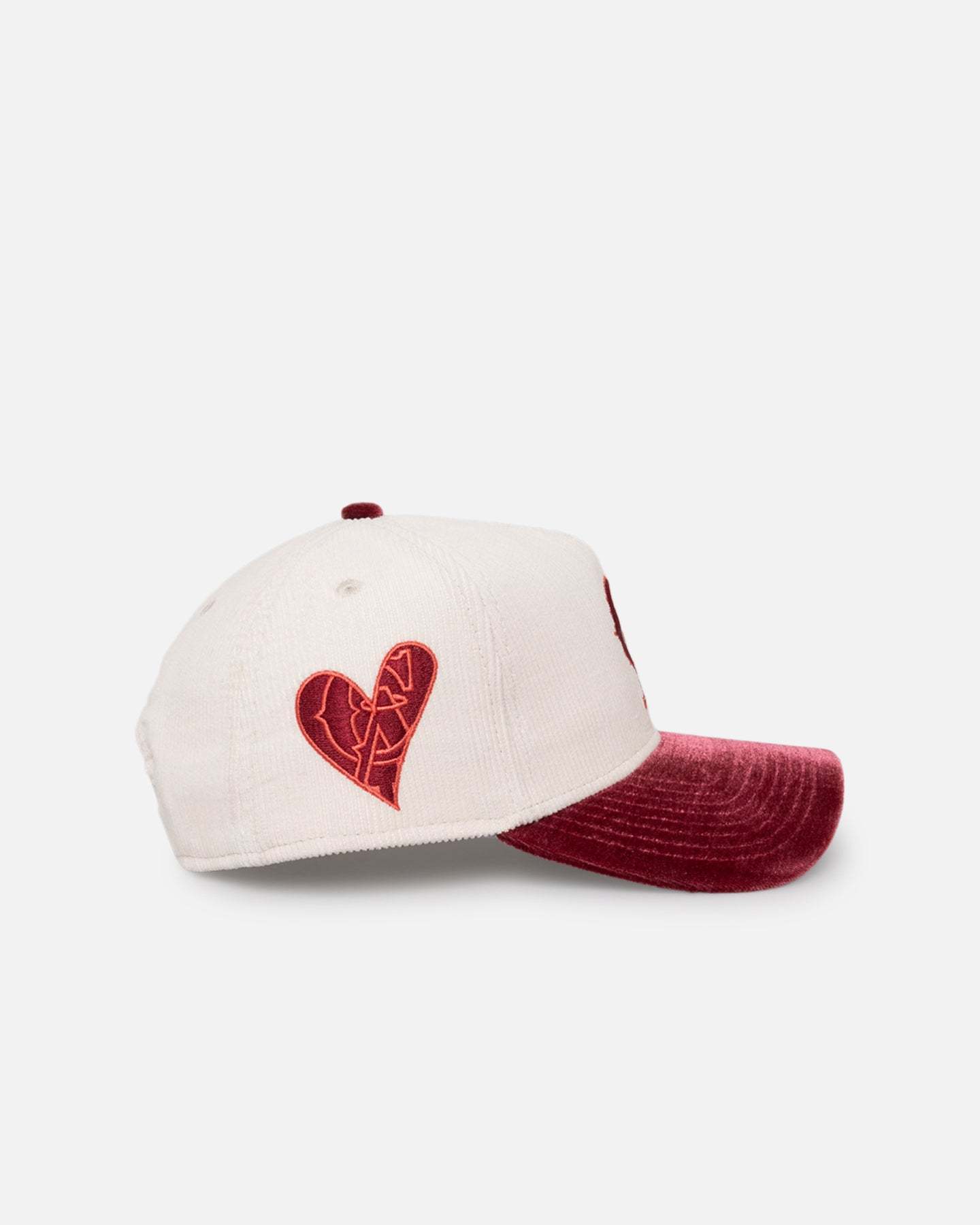 The New Era 9FORTY® A-Frame™ is an adjustable snapback style that merges the front two crown panels into one, creating a high-profile pinched shape.- 9FORTY® A-Frame™- Adjustable Snapback Closure- 5-Panel Structured Silhouette- Corduroy- Velvet brim with embroidered heart- 2-Tone- High Profile Pinched Crown- Pre-curved Visor- Logo Embroidery Detailing- Colour: Chrome White/Cardinal- Style: 14214433