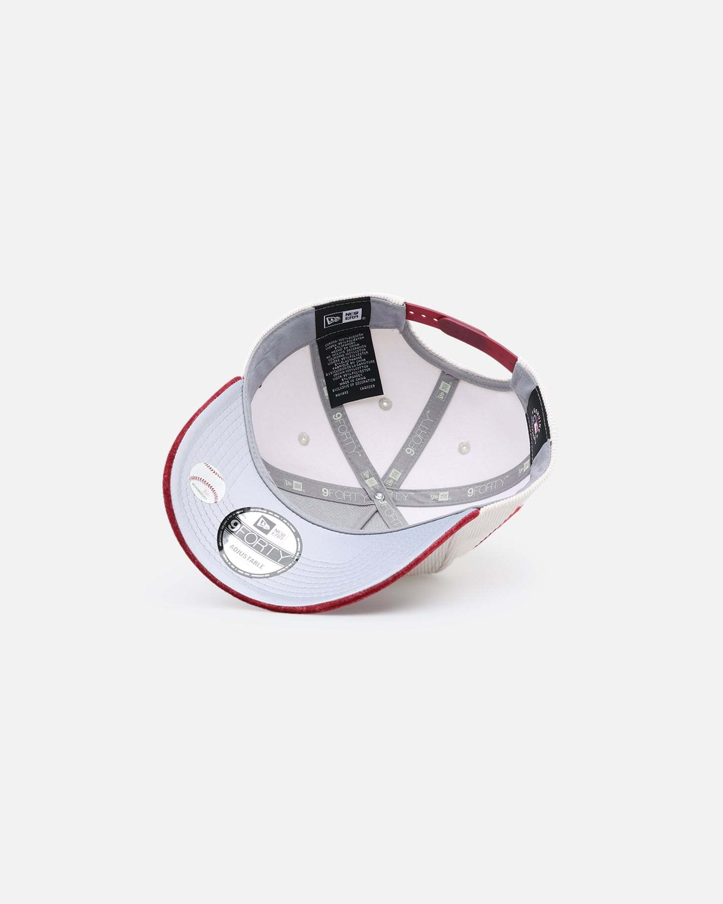 The New Era 9FORTY® A-Frame™ is an adjustable snapback style that merges the front two crown panels into one, creating a high-profile pinched shape.- 9FORTY® A-Frame™- Adjustable Snapback Closure- 5-Panel Structured Silhouette- Corduroy Upper- Velvet Brim- High Profile Pinched Crown- Pre-curved Visor- Logo Embroidery Detailing- Colour: Chrome White/Cardinal- Style: 14214430