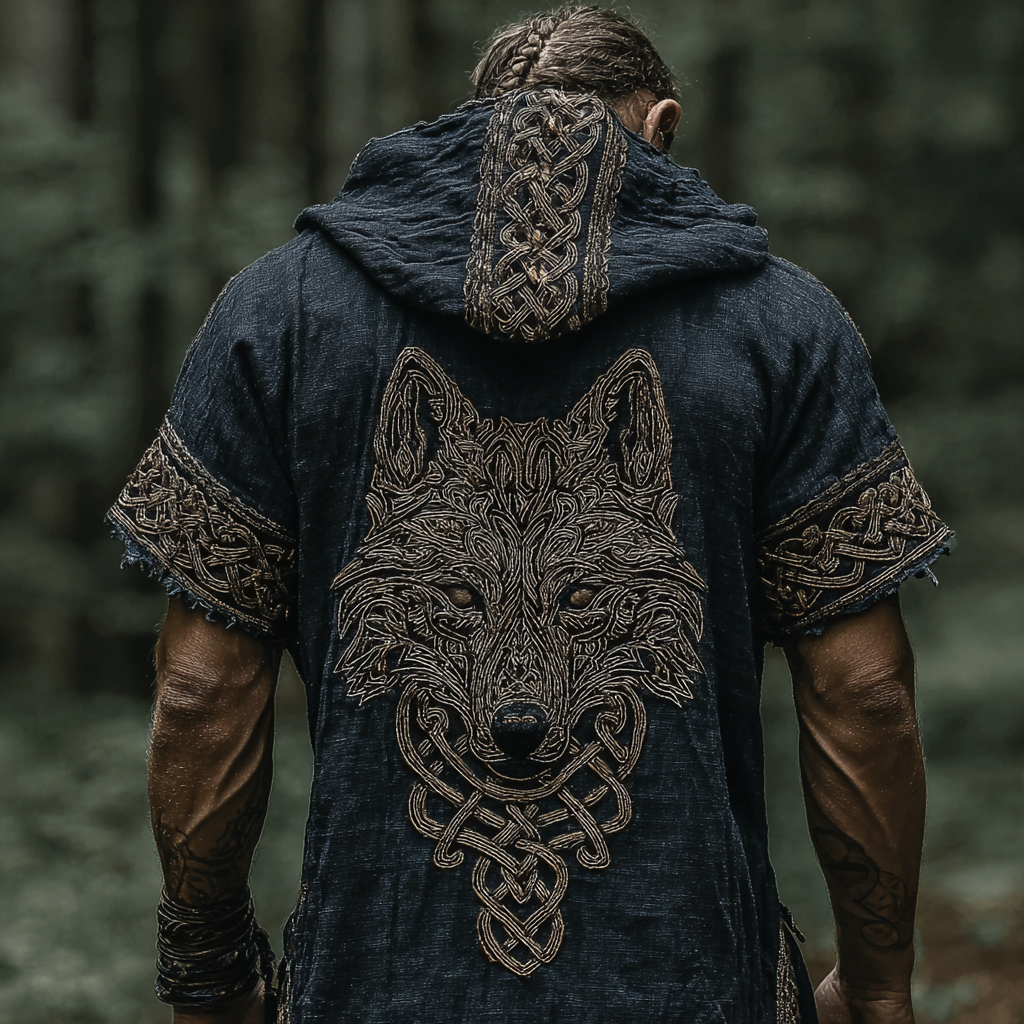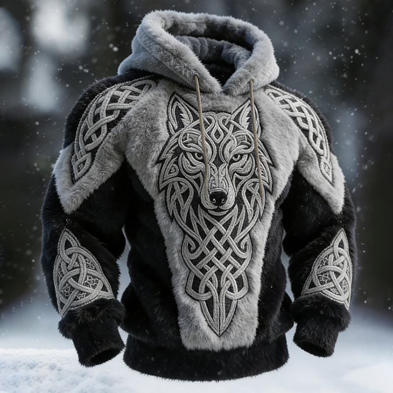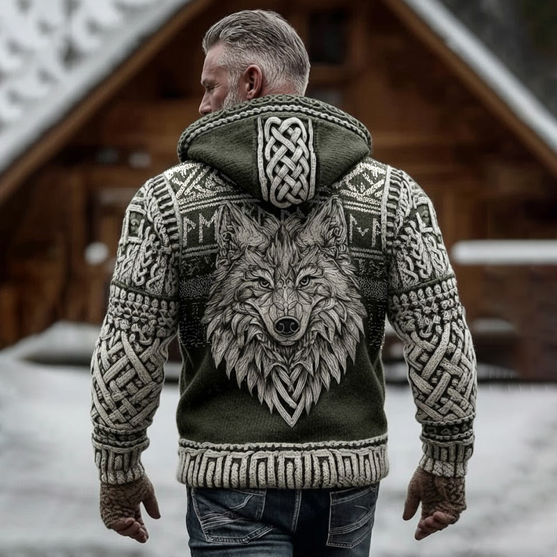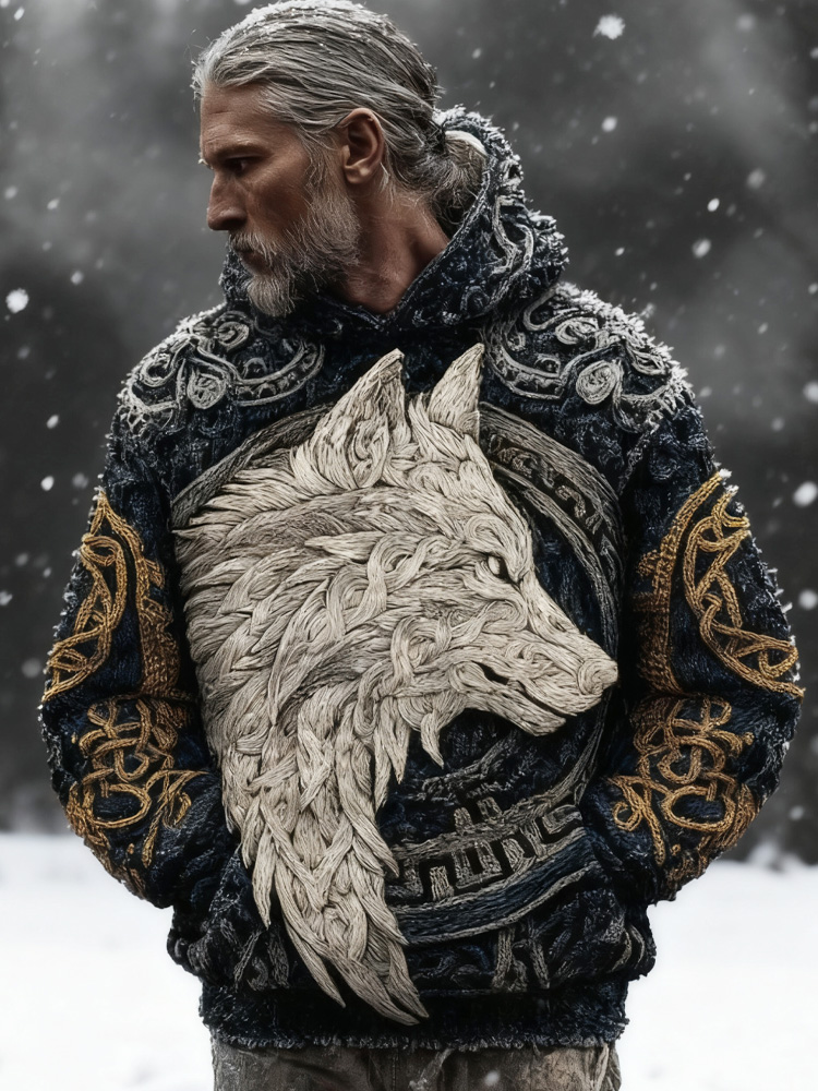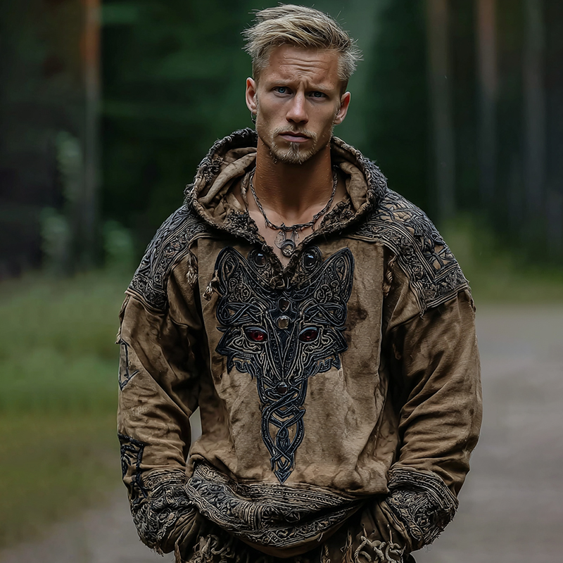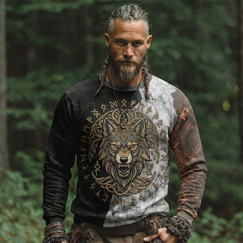 Men's Viking Tribal Jacquard Celtic Wolf Inspired Art Print Long-sleeve T-shirt
