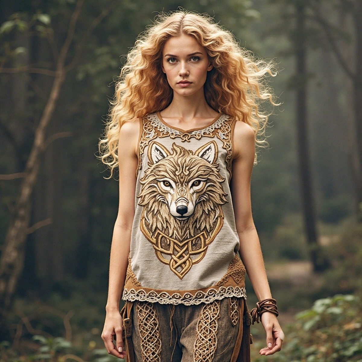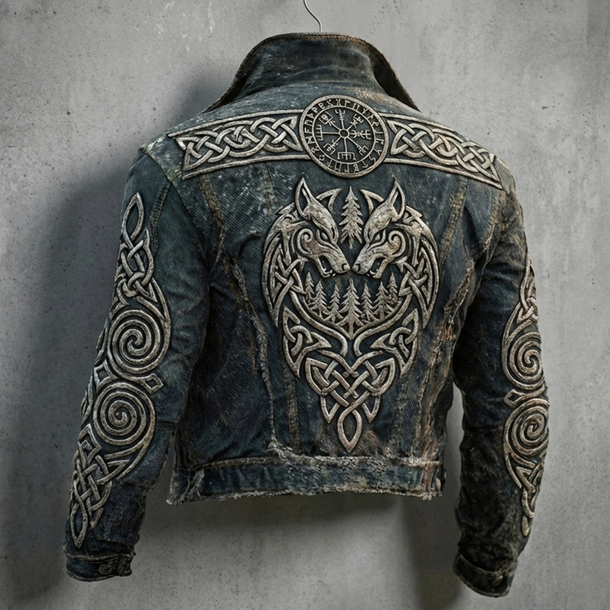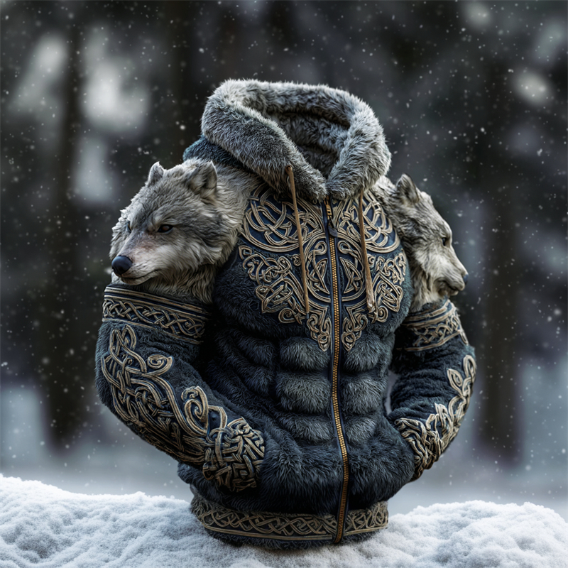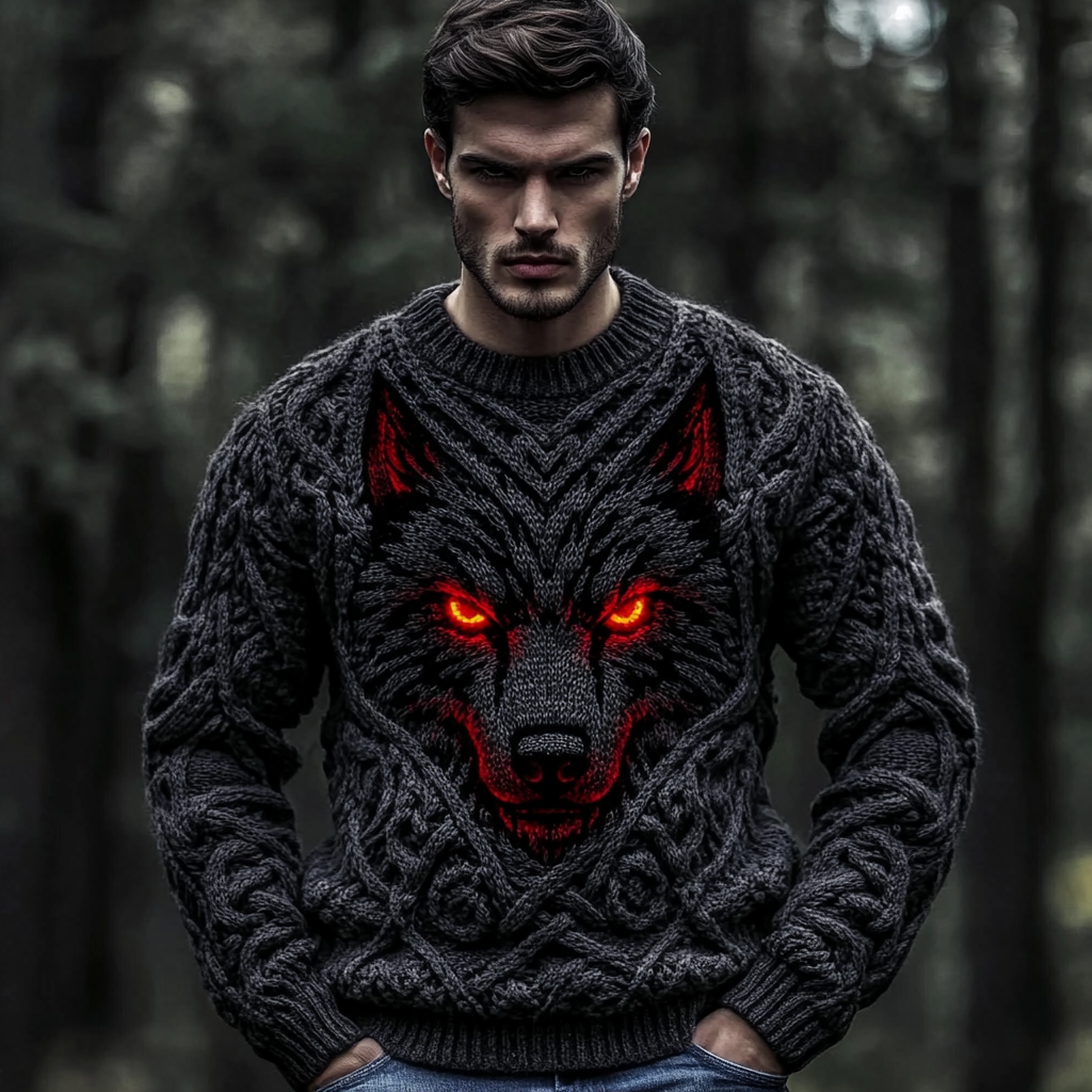 Men's Viking Tribal Jacquard Celtic Wolf Inspired Art Print Long-sleeve T-shirt