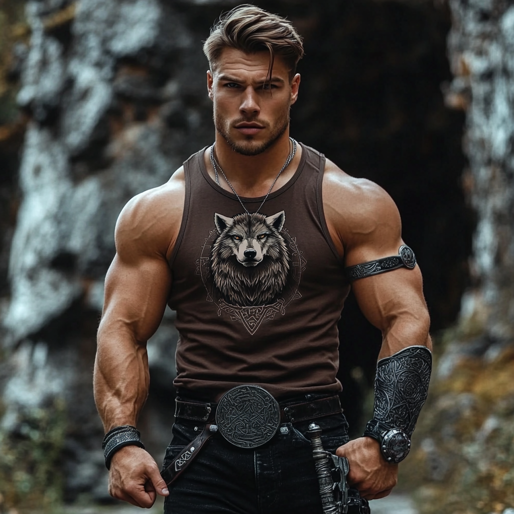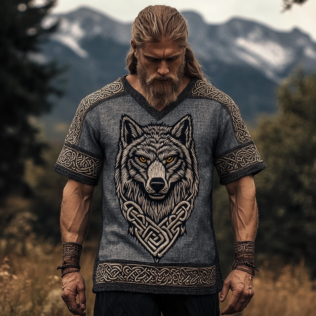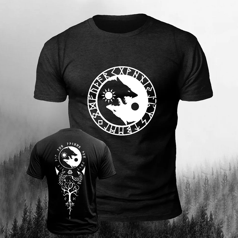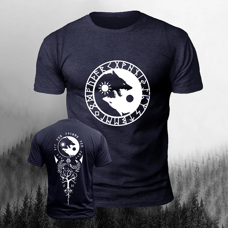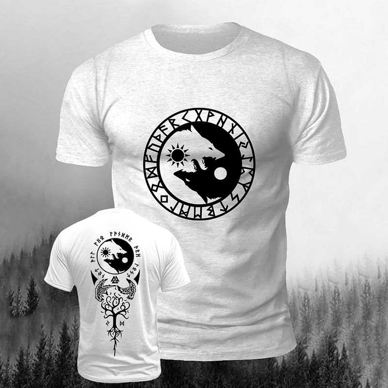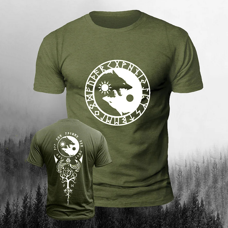 Men's Vintage Viking Wolf Art Print Casual Short Sleeve T-shirt