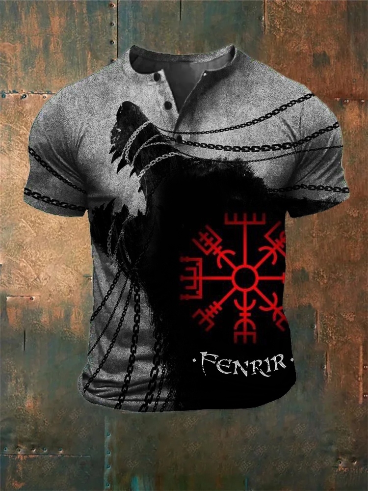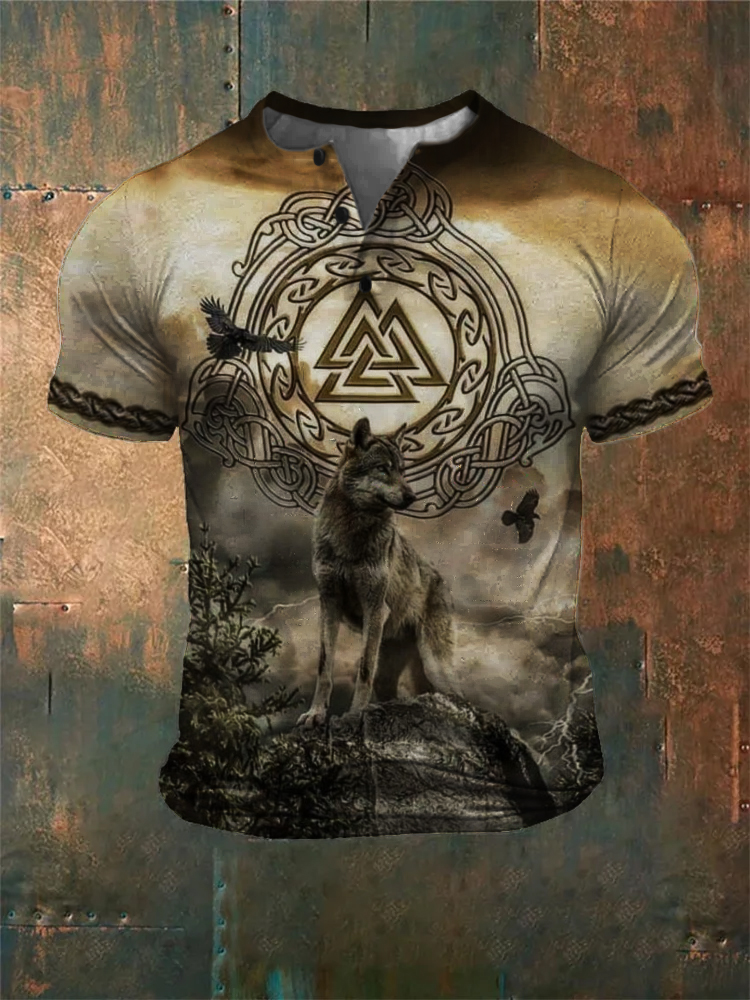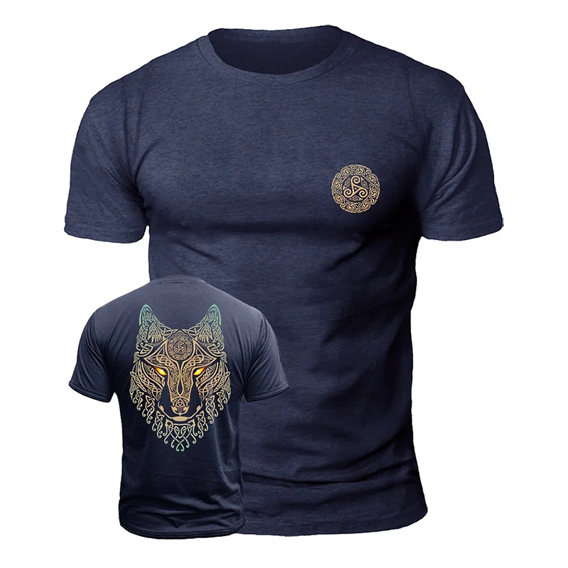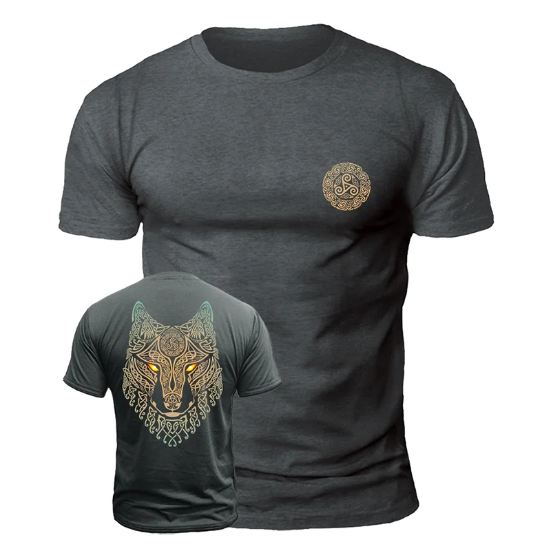 Men's Vintage Viking Wolf Print Casual Short Sleeve T-shirt