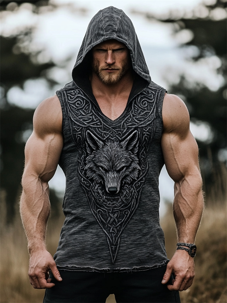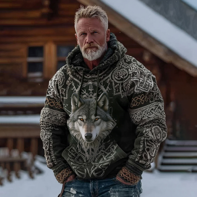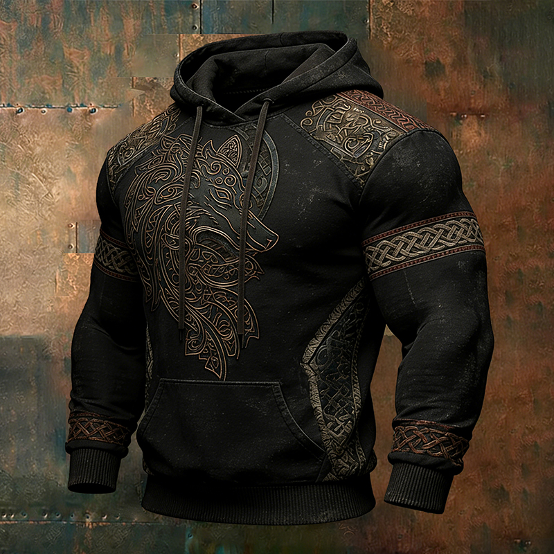 Men's Vintage Viking Celtic Wolf Pattern Hoodie