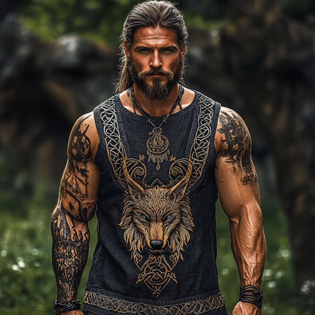 Men's Print Viking Wolf With Celtic Knot Art Pattern Tank Top