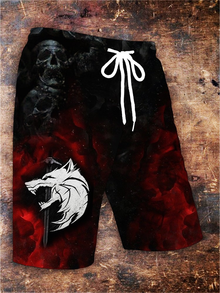 Men's Viking Wolf Sword Skull Print shorts