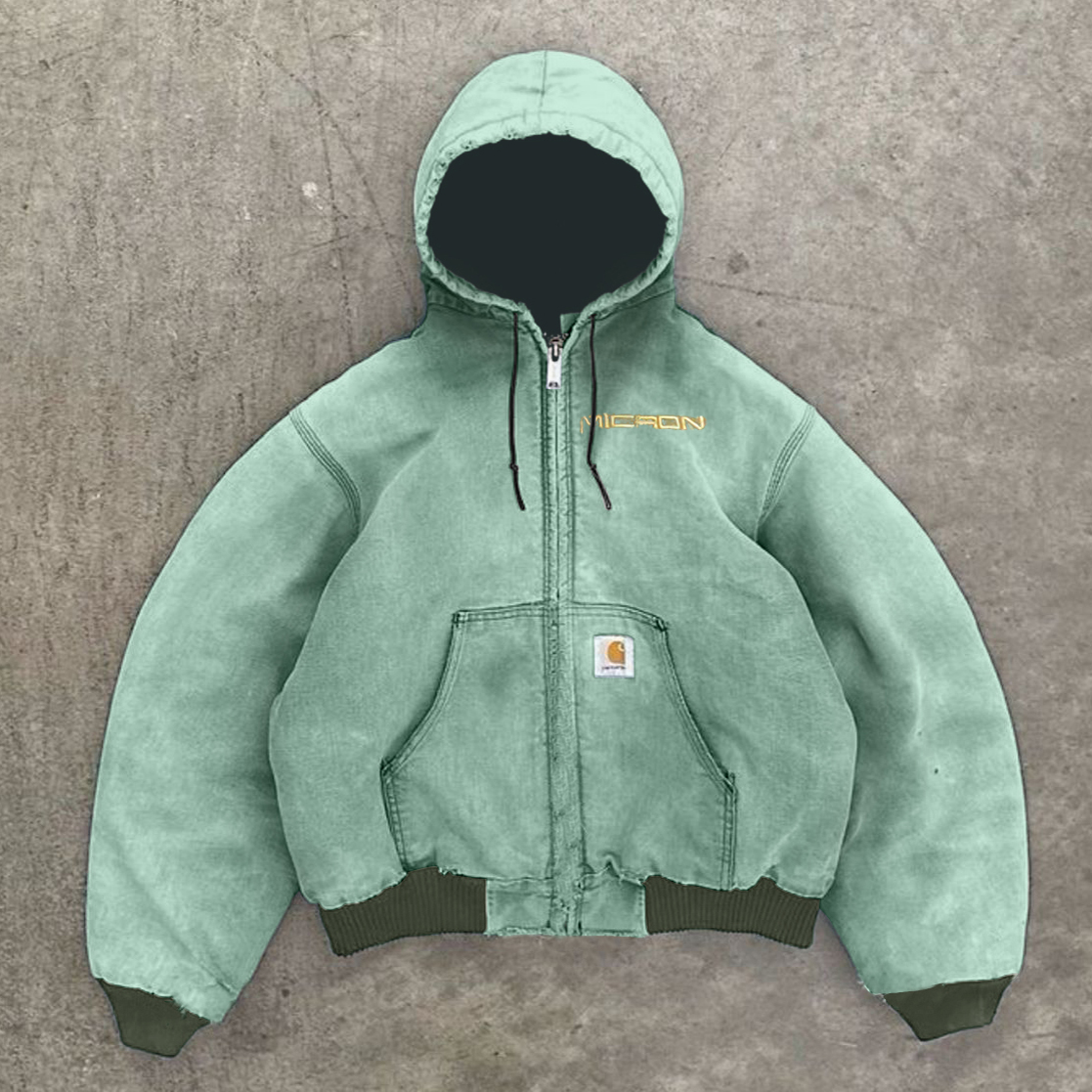 Vintage washed textured embroidered long sleeve thickened jacket