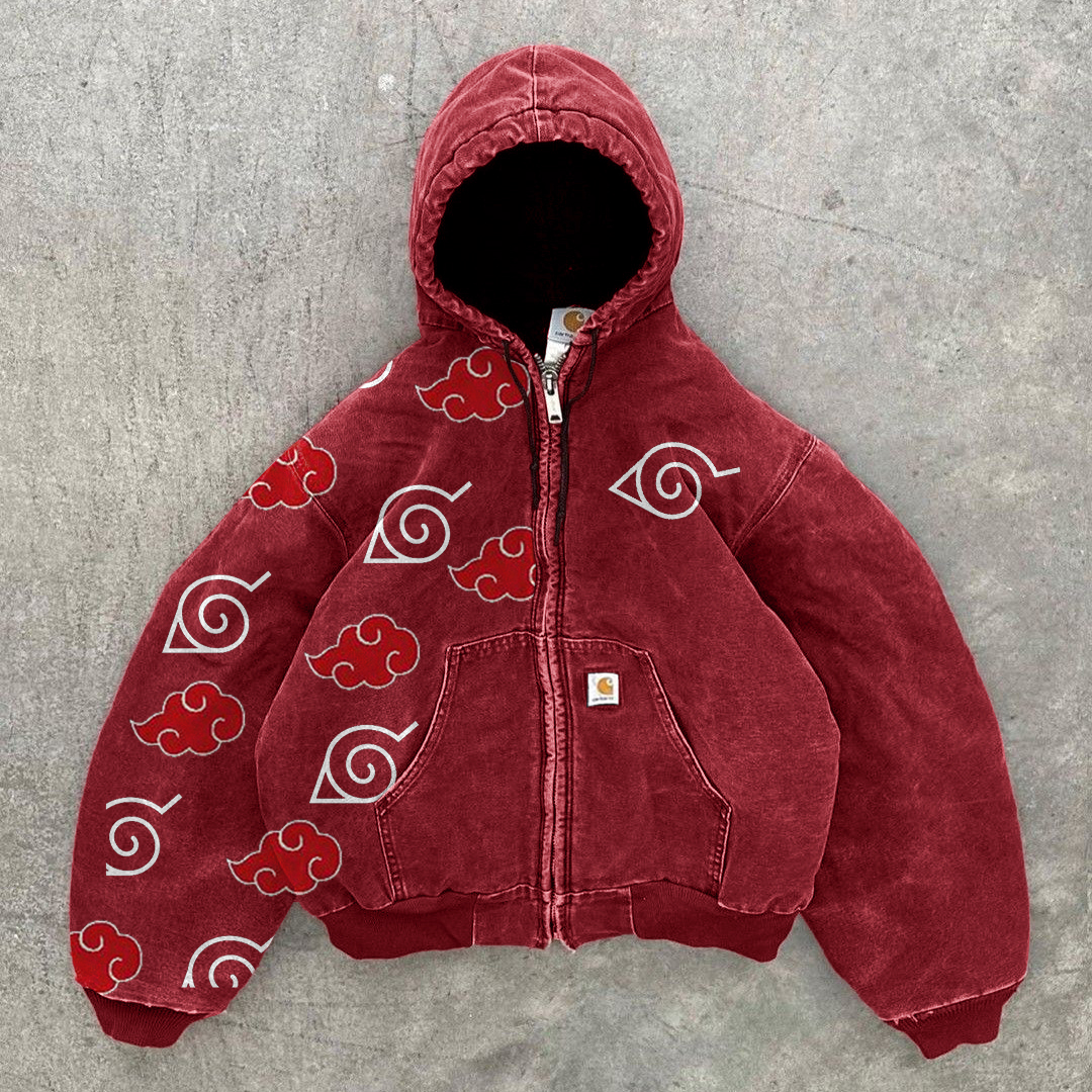 Street Anime Lucky Cloud Pattern Zipper Thickened Long Sleeve Jacket
