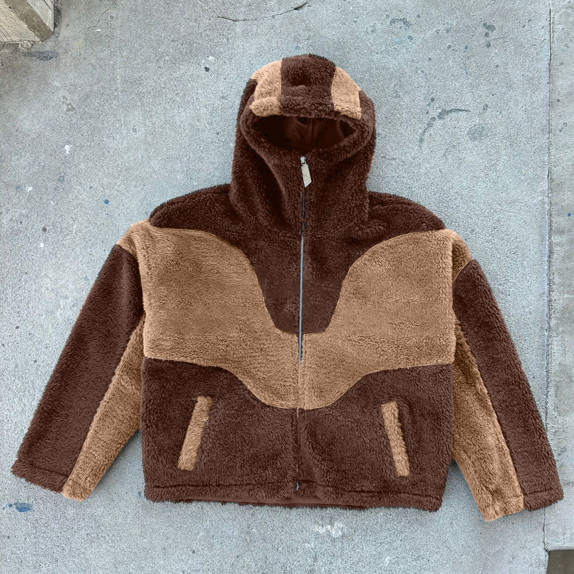 Contrast Color Stitching Zipper Fleece Hooded Jacket