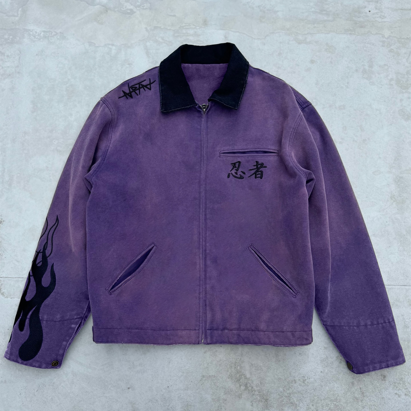 Japanese Flame Printed Long Sleeve Zipper Pocket Jacket