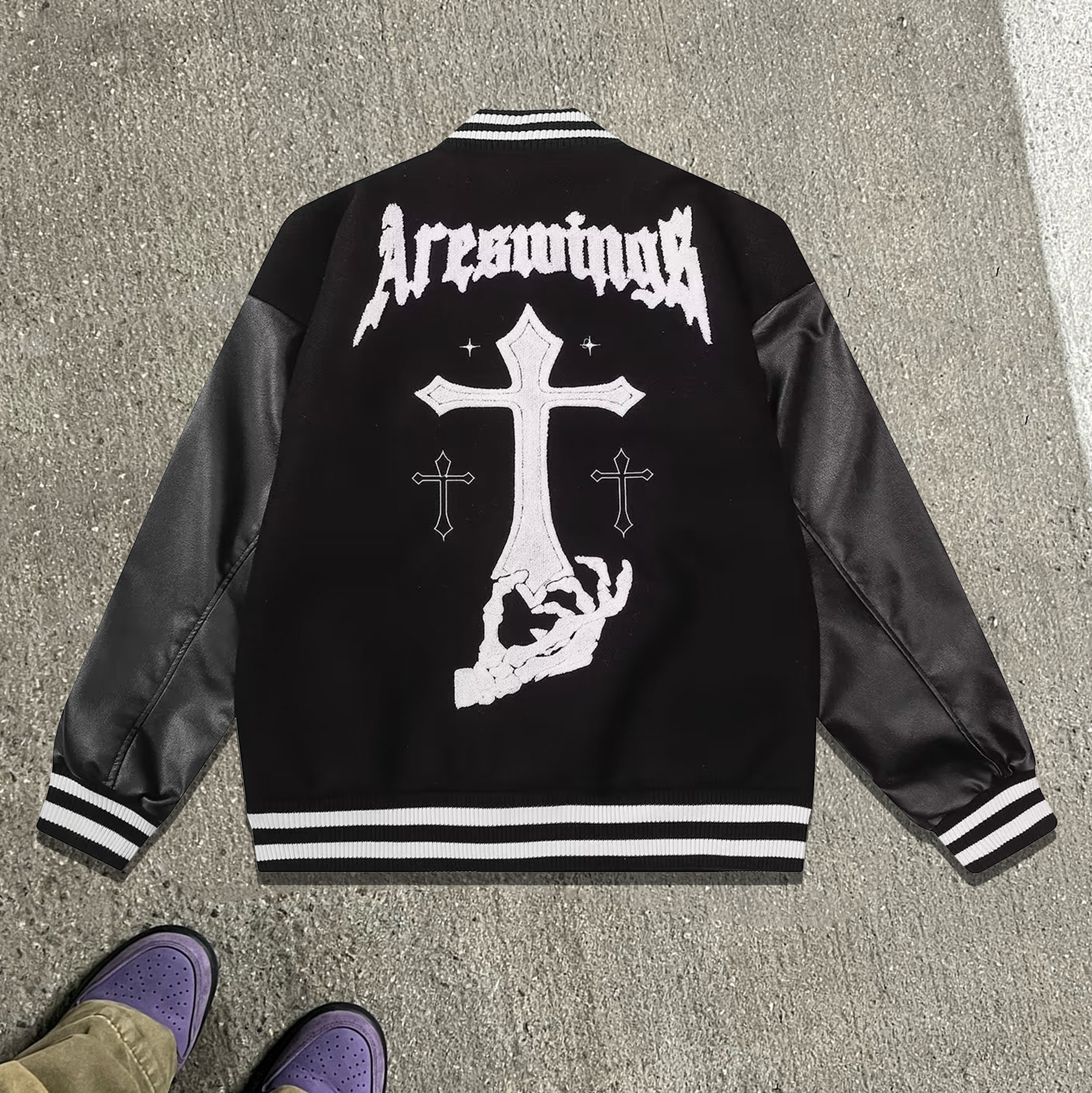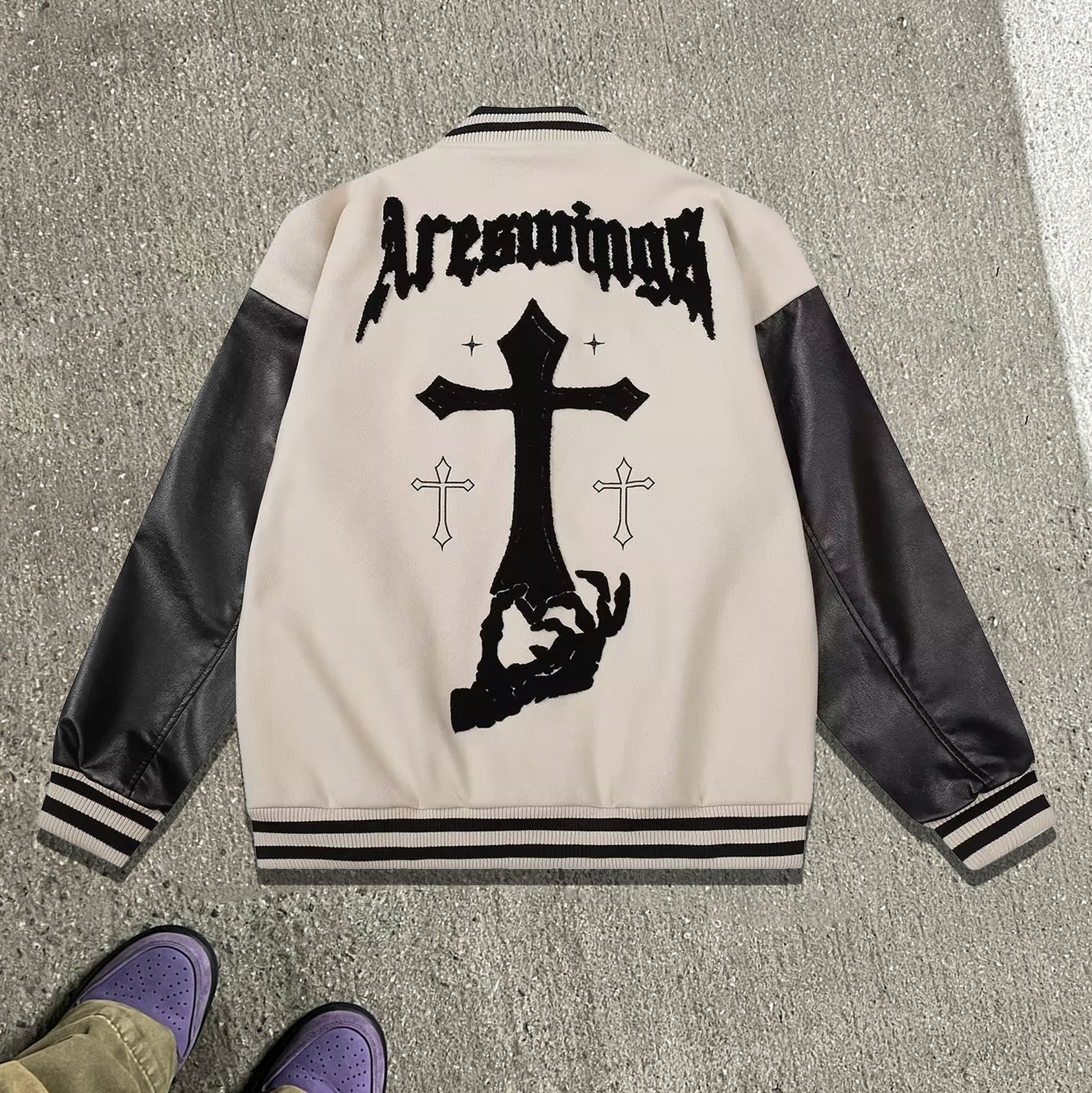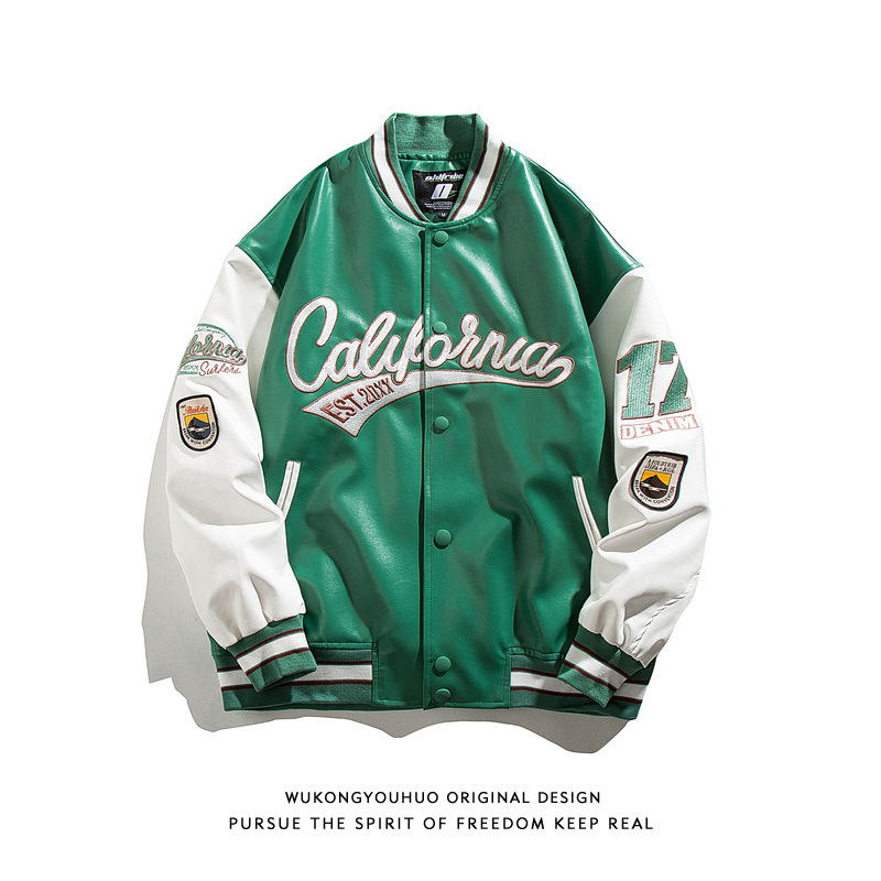Cross leather patchwork towel embroidery baseball jacket