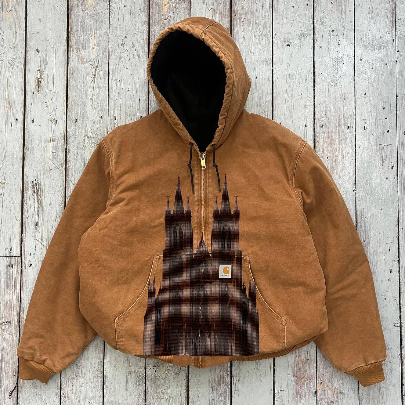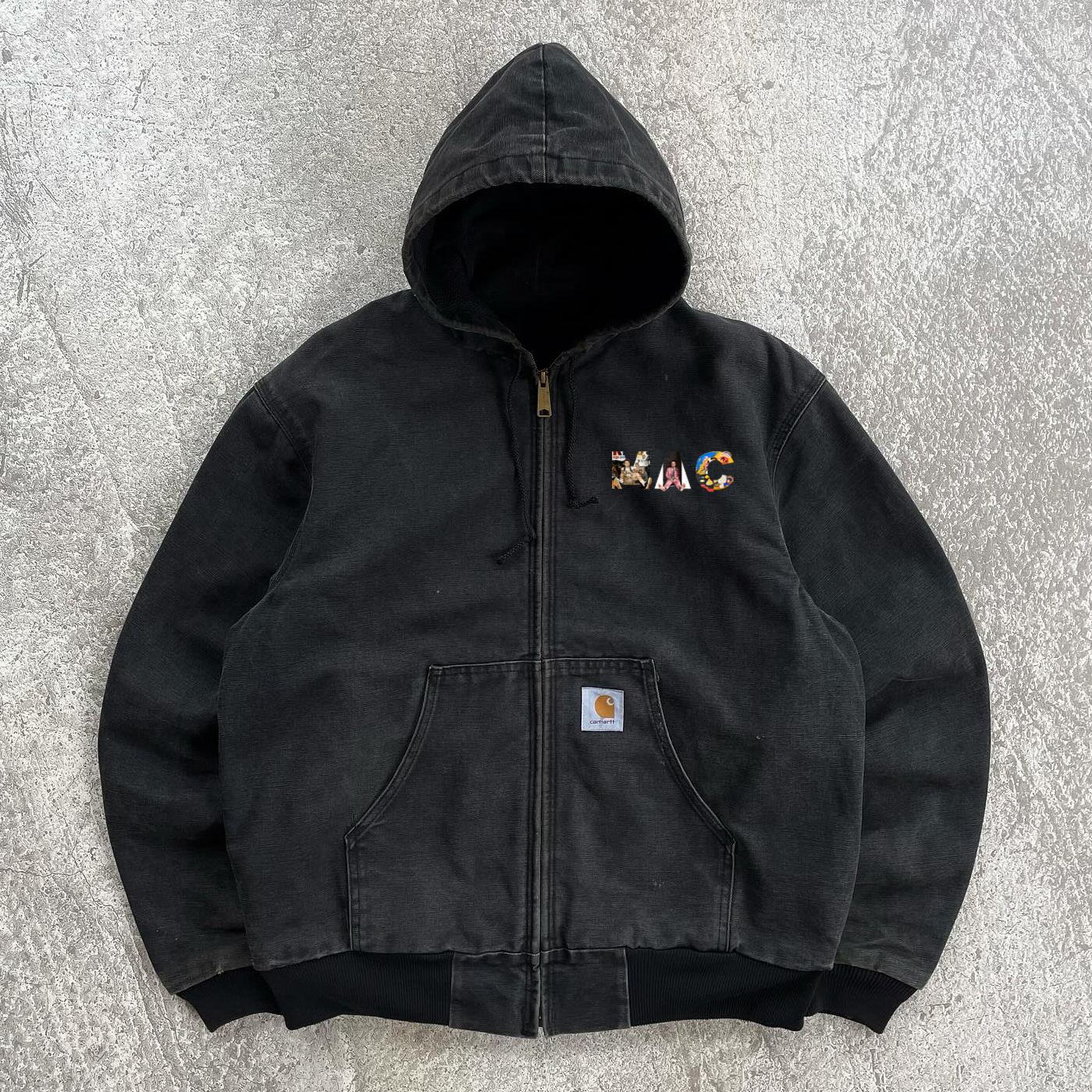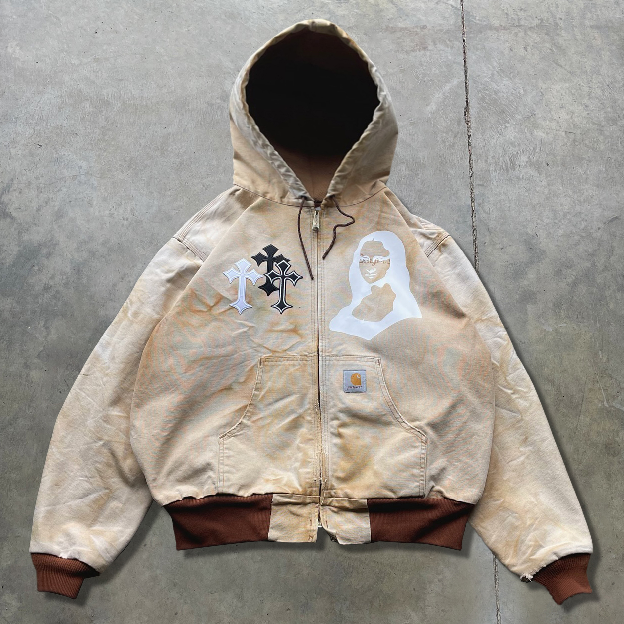 Vintage distressed cross badge Our Lady zip-up jacket