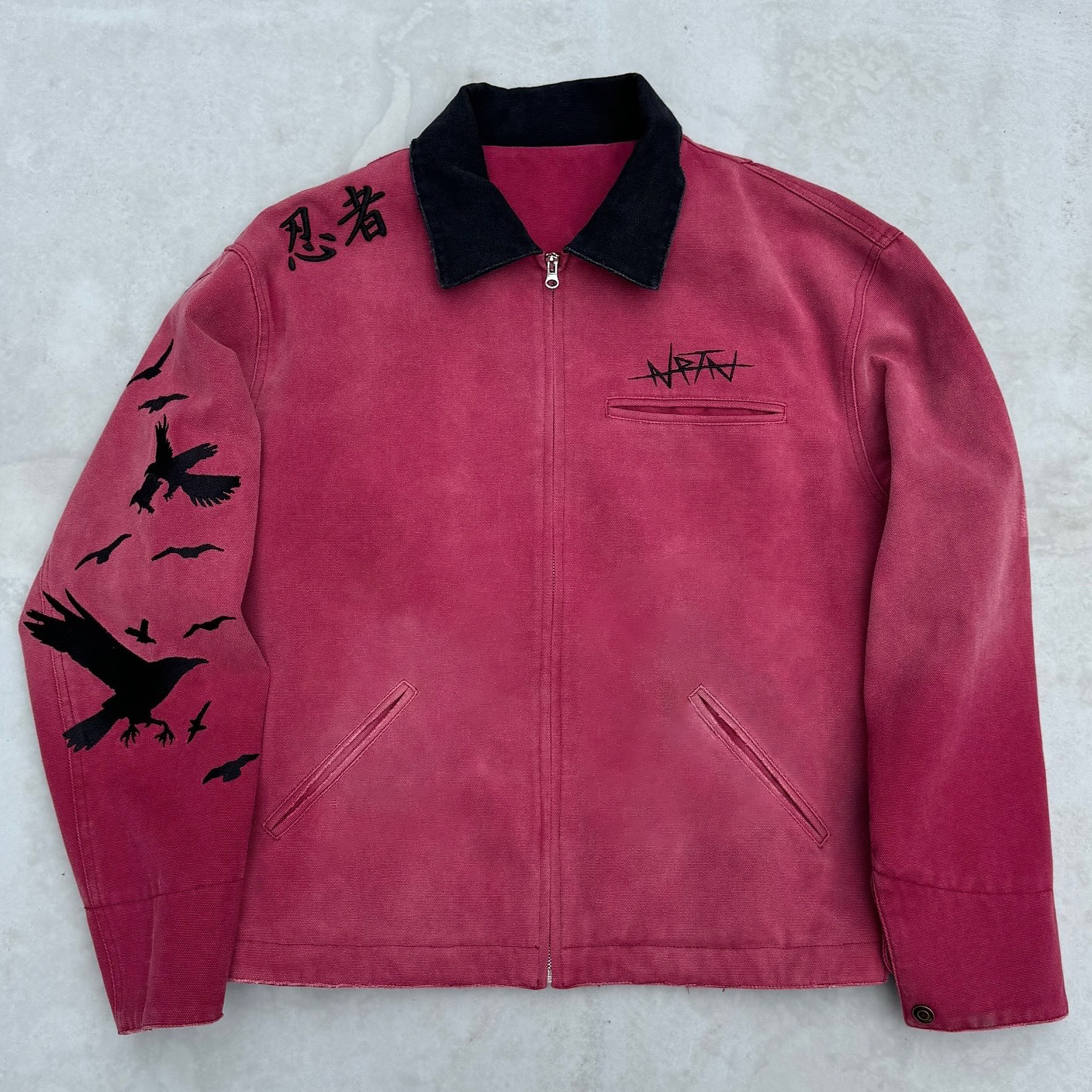 Vintage zipper long sleeve stand collar lined jacket