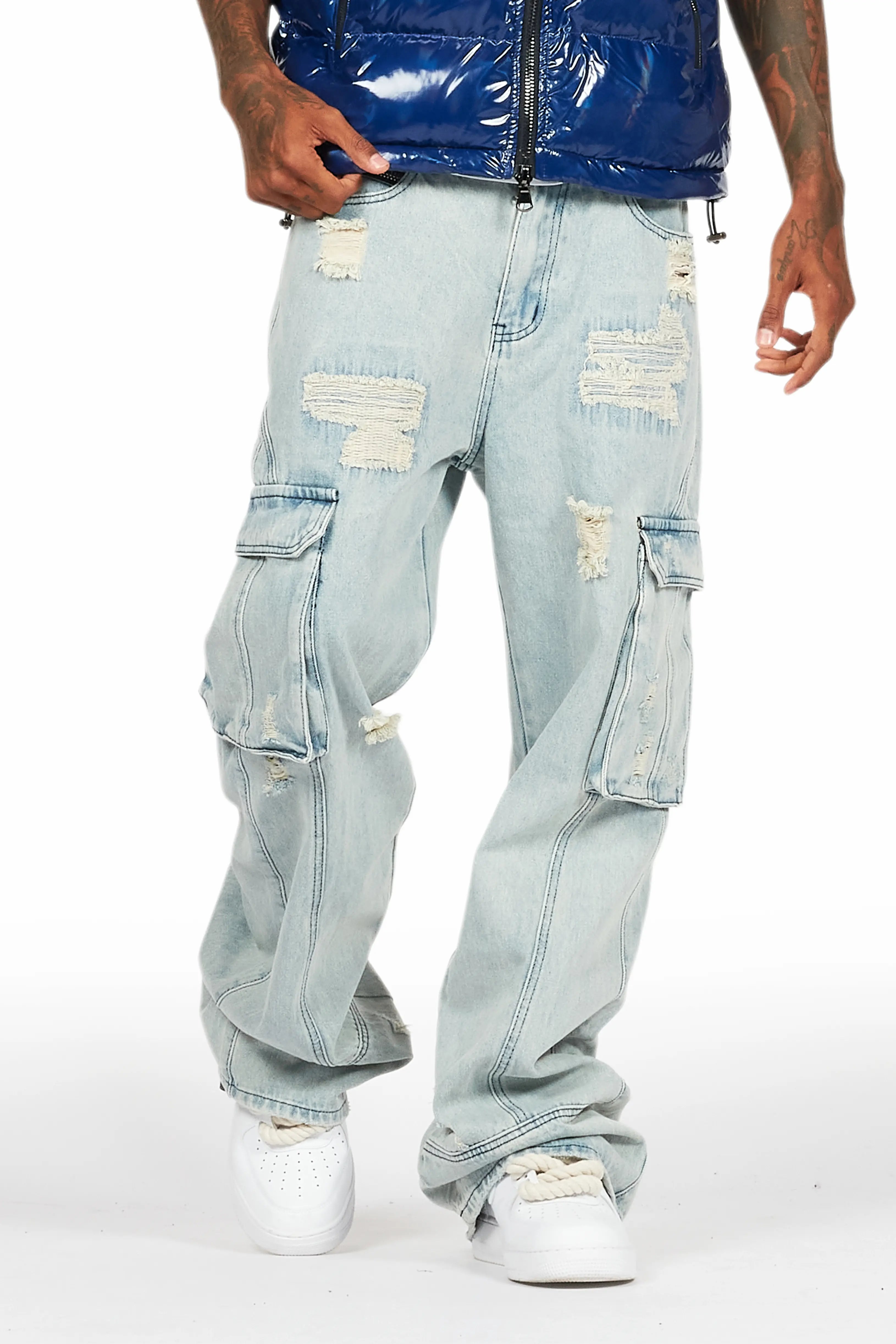 Galil 503 Stacked Distressed Denim Jeans