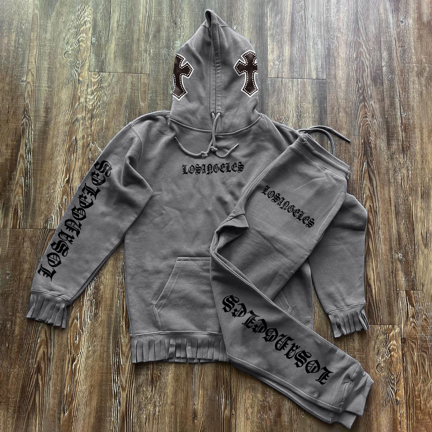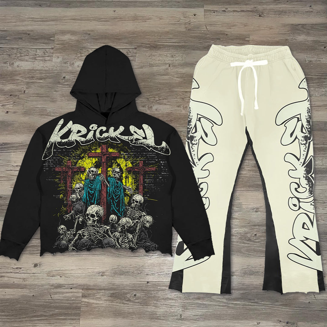 Retro Skull Full Zip Hoodie Flared Pants Set