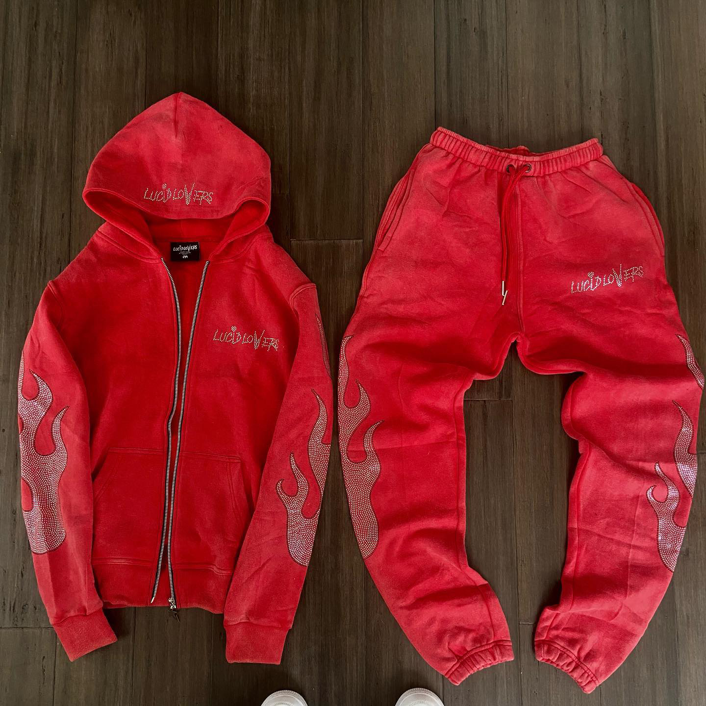 Lost Love Print Hoodie Sweatpants Two Piece Set