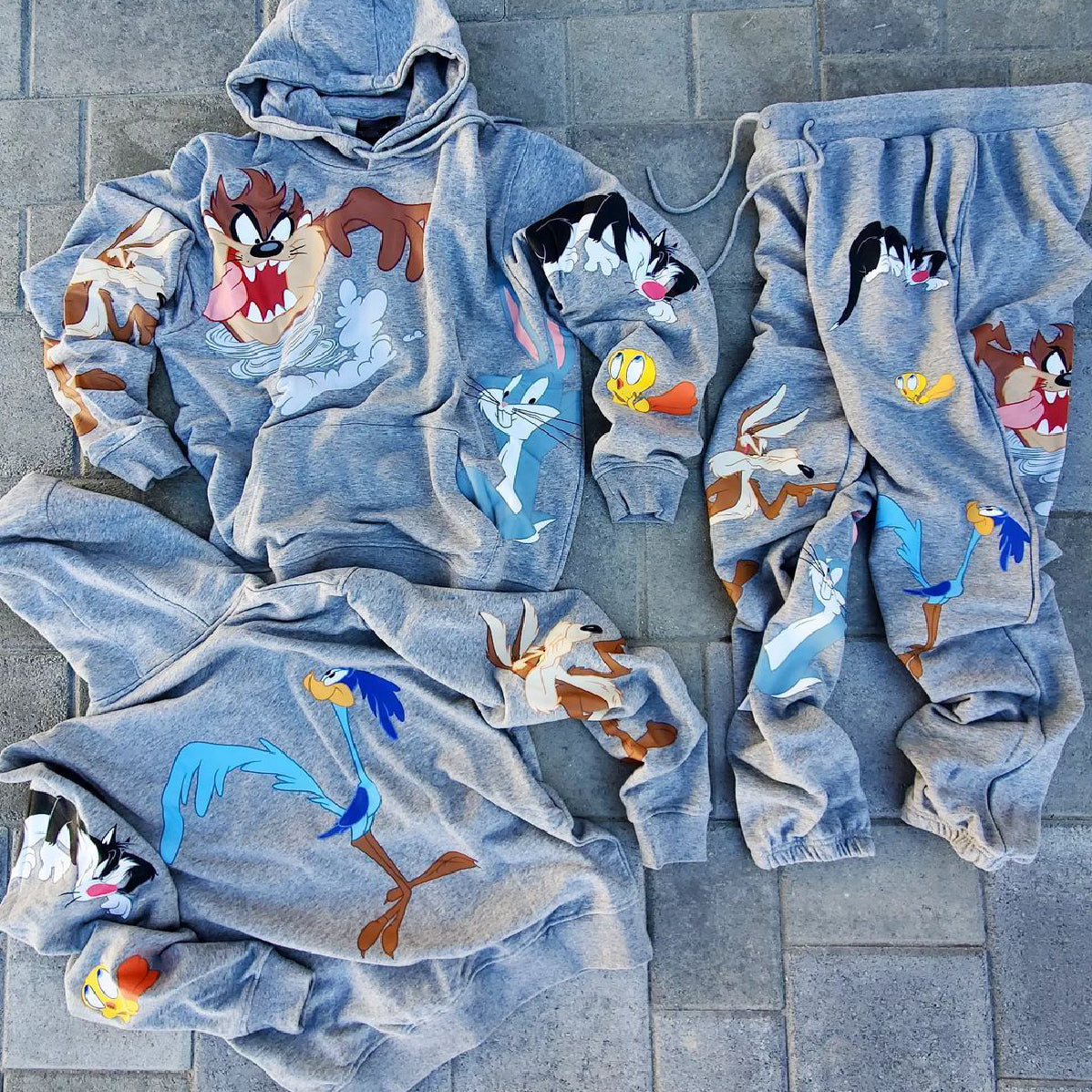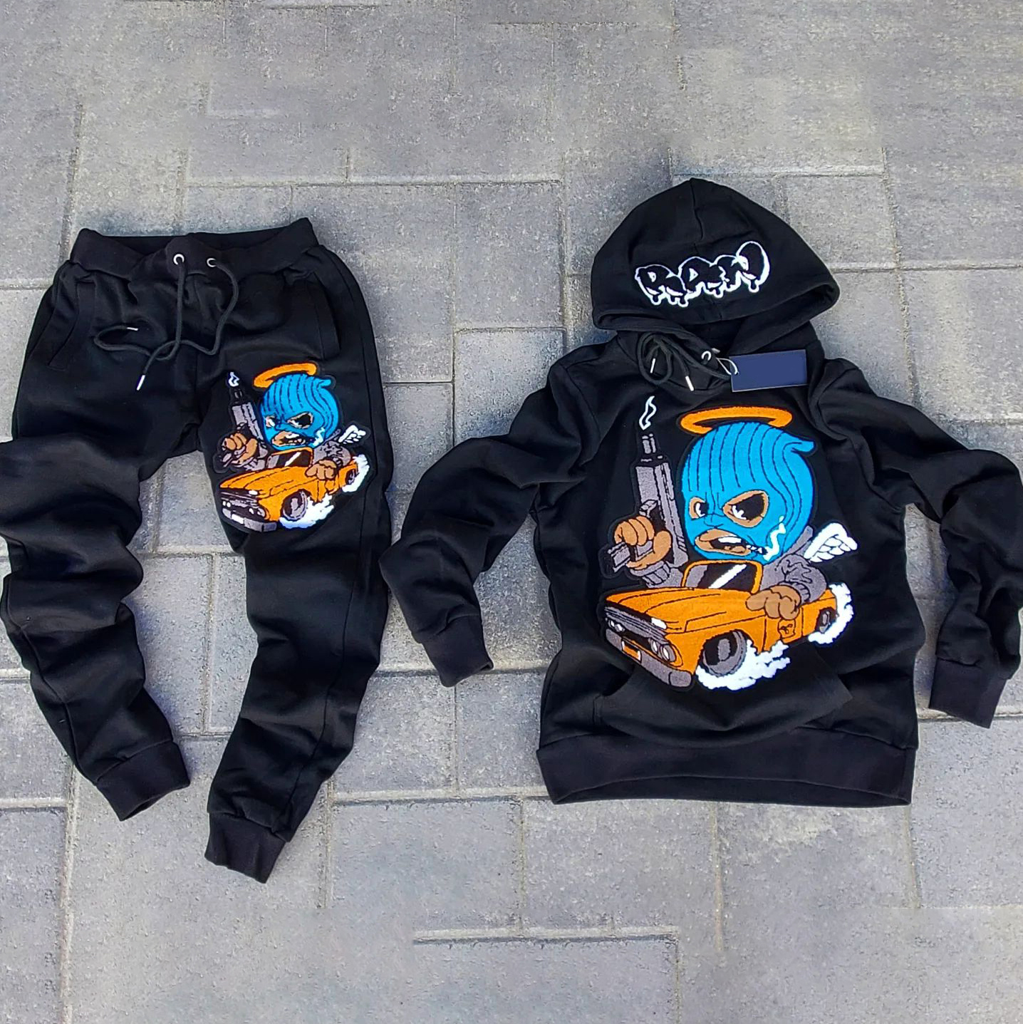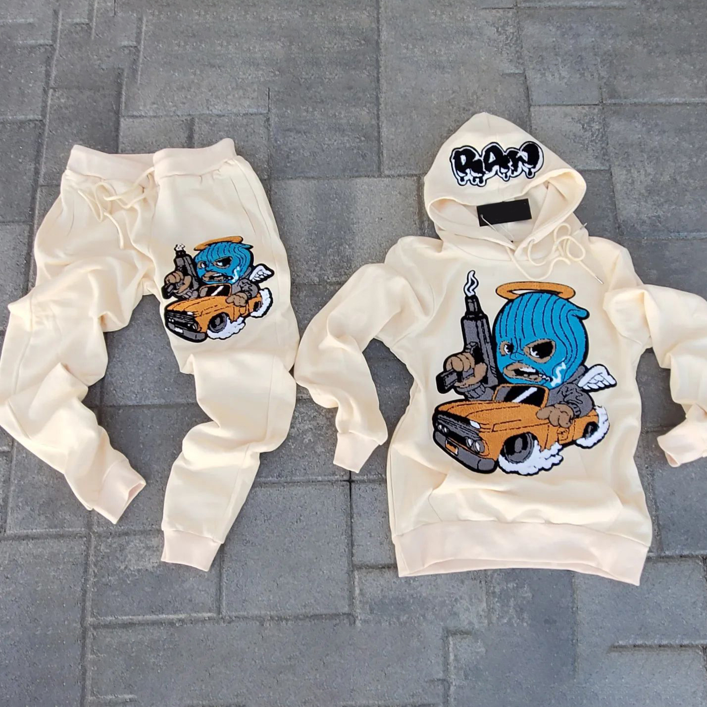 Cartoon retro trendy brand hoodie pants suit