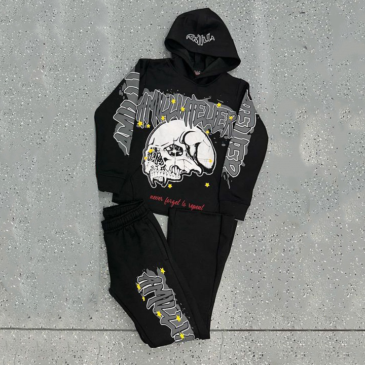 Street Style Skull Print Hoodie Set