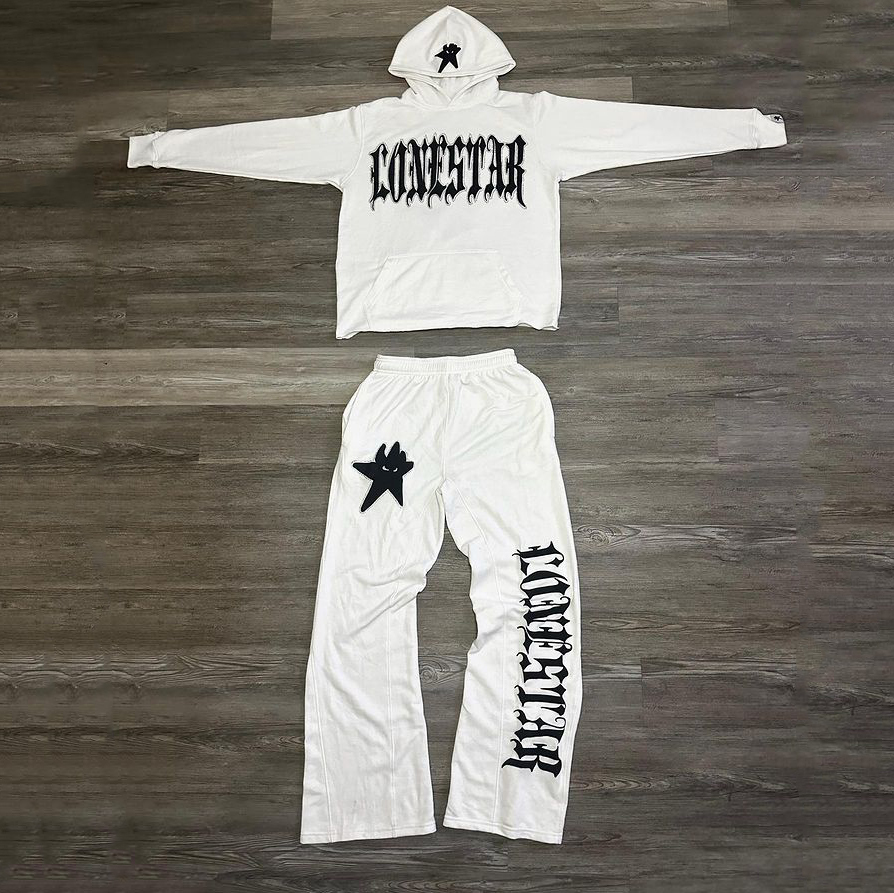 Alphabet & Pentagram Print Hoodie Sweatpants Two Piece Set