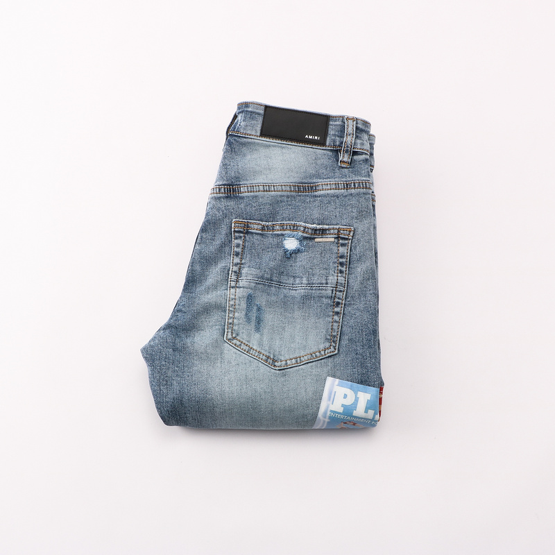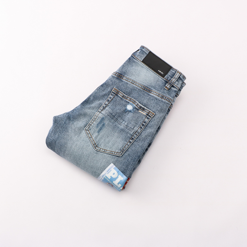 Introducing the AAmiri Slim-Fitting Fashion Straight Jeans for men - the perfect addition to your casual wardrobe.