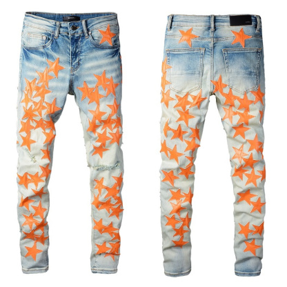 Introducing the AAmiri Slim-Fitting Fashion Straight Jeans for men - the perfect addition to your casual wardrobe.