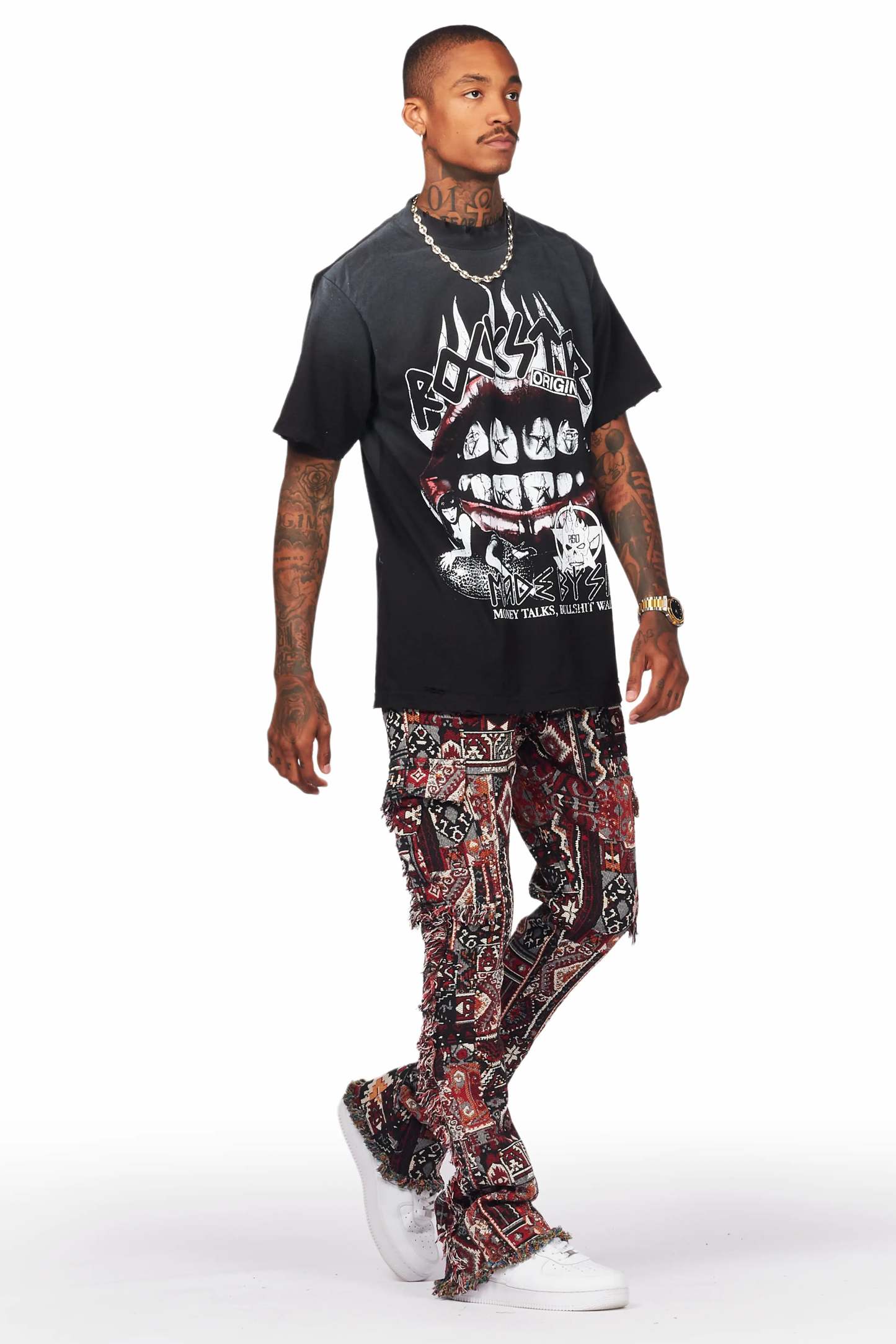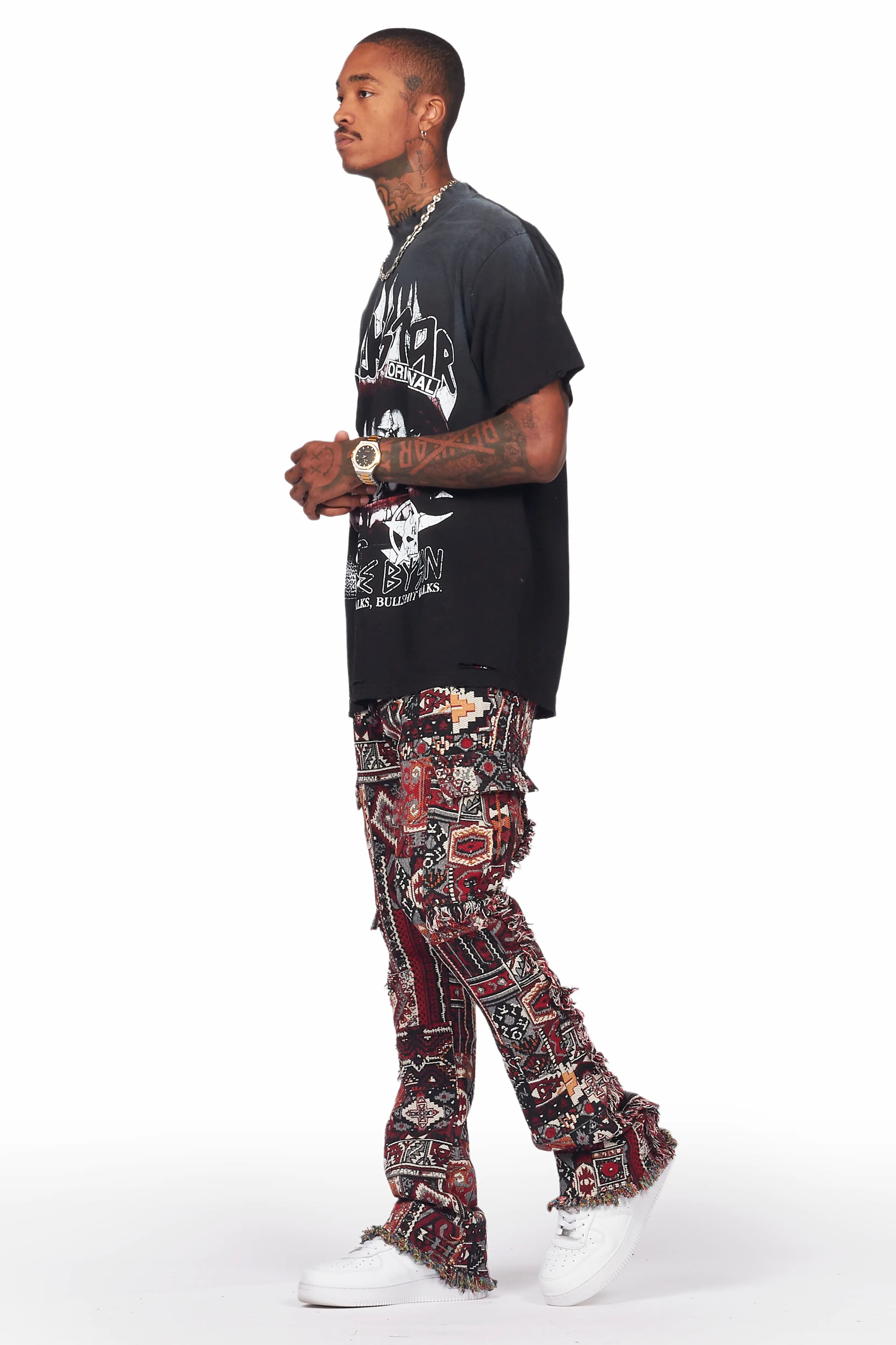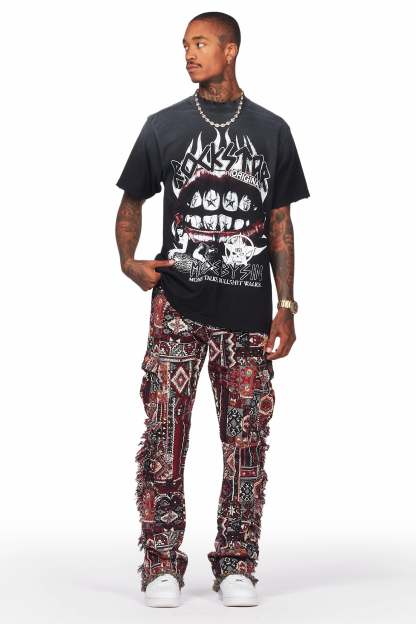 Ayami Black/Multi Slim Tapestry Flare Pants