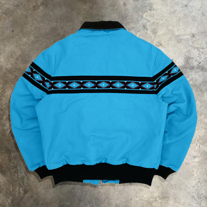 Aztec Pattern Ribbon Splicing Long Sleeve Zipper Design Jacket