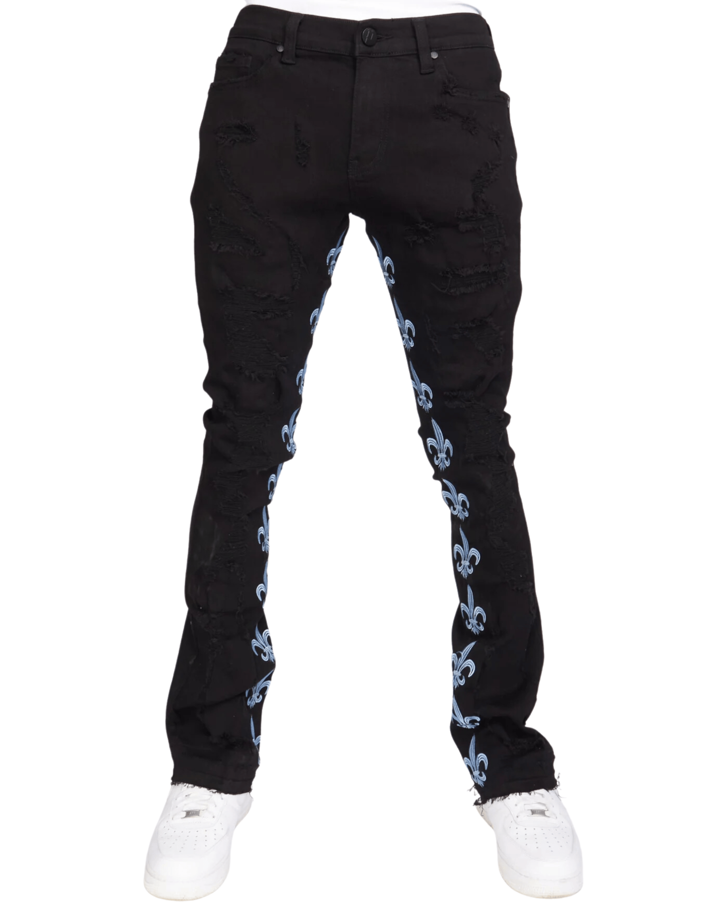 Introducing the Politics Jeans - Skinny Stacked Embroidery in the Barkley style, a perfect addition to any fashion-forward wardrobe. Expertly crafted by Politics, these jeans offer a superb blend of comfort, style, and durability. The intricate embroidery detailing showcases unique symbols down the legs, making a bold statement. Featuring a sleek design with a mid-rise waist, a skinny stacked fit, and a classic five-pocket construction complete with a zip fly and button closure, these edgy jeans are versatile and easy to style for various occasions.