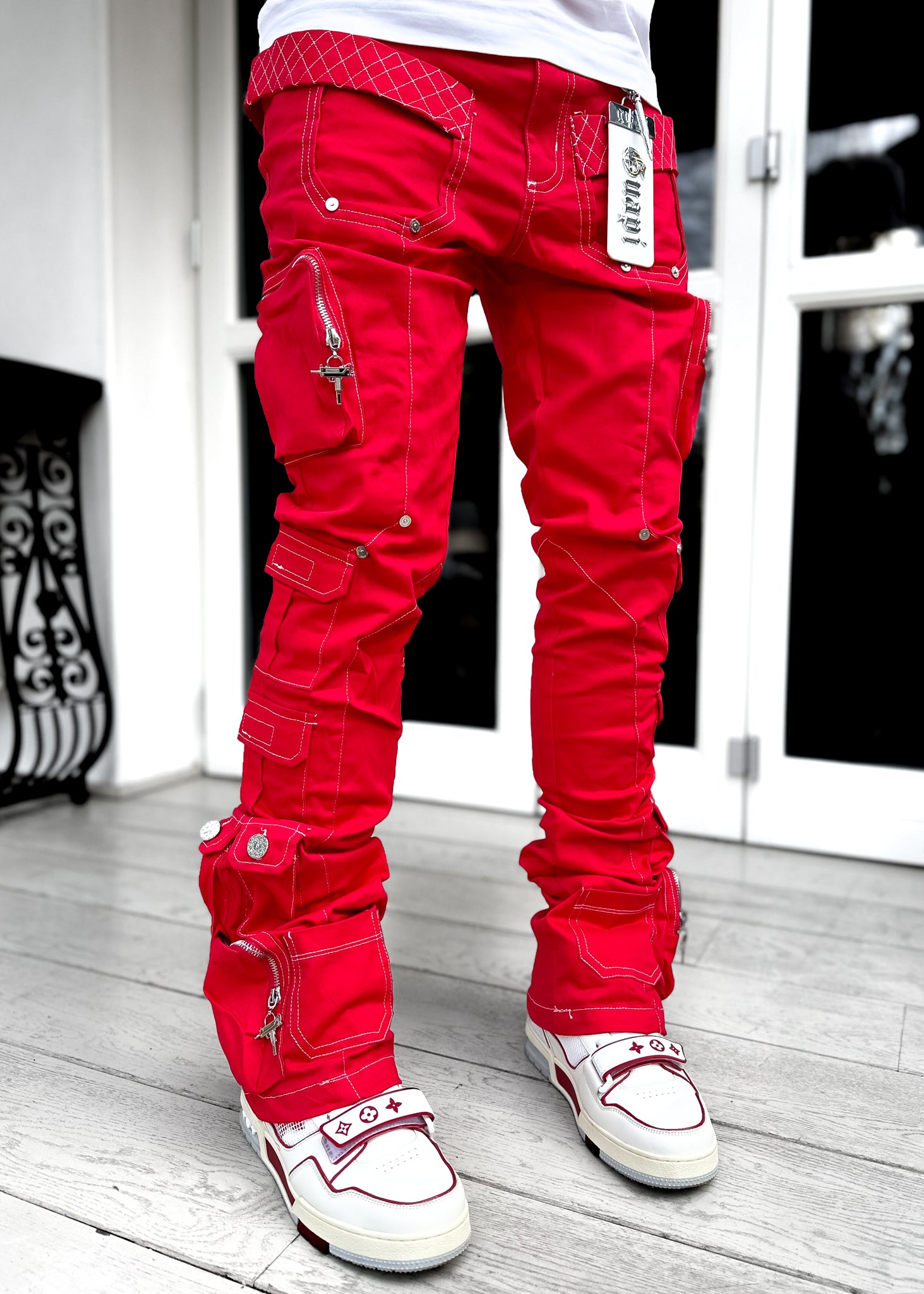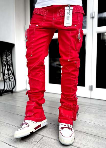 Blood Red Contrast Cargo Pant
