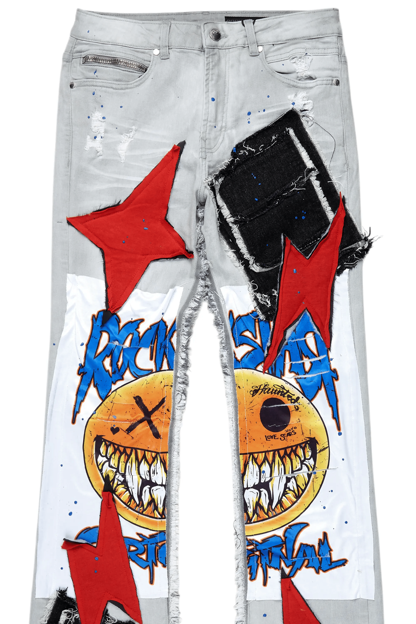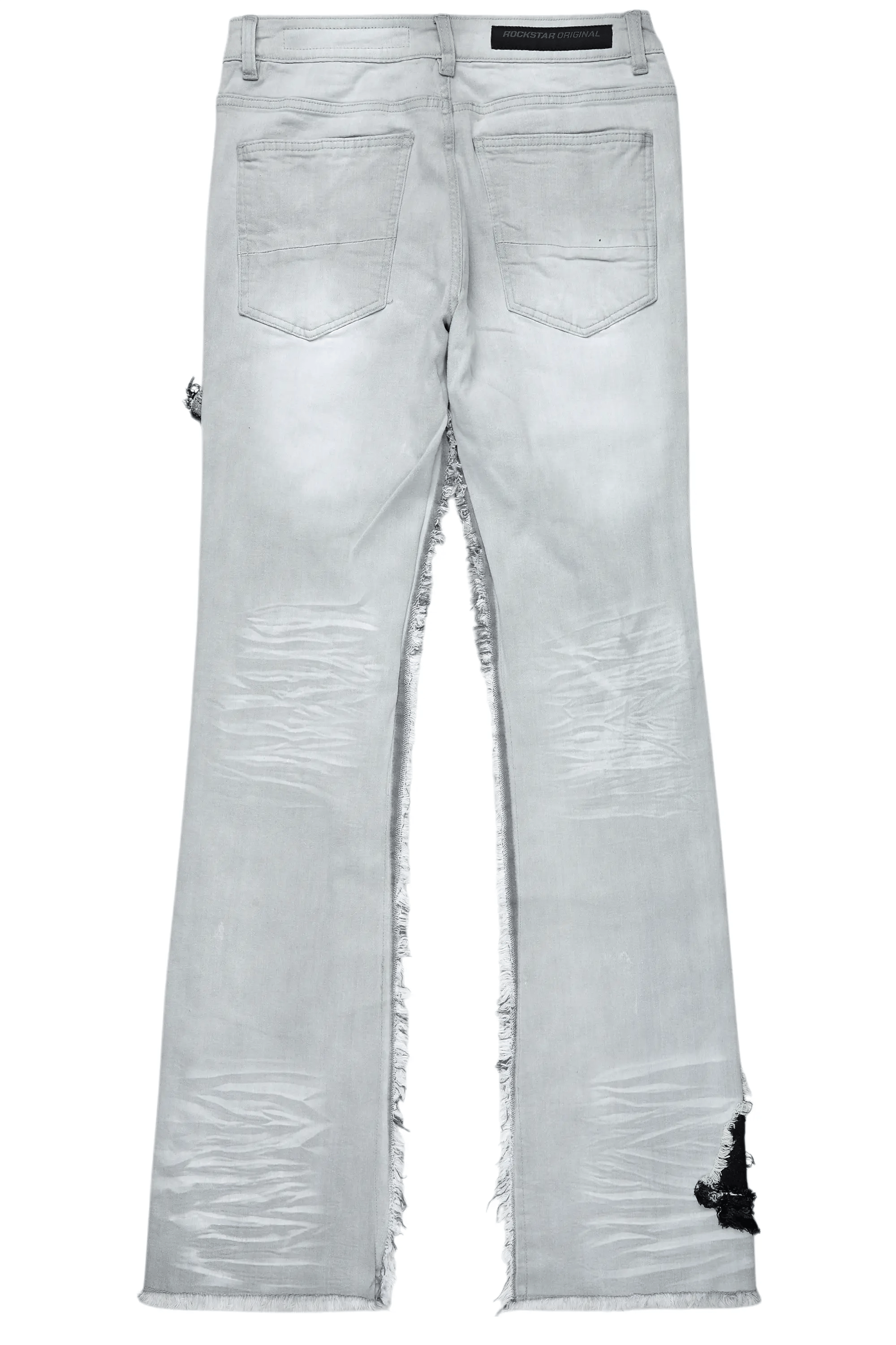 Fraust Light Grey Patchwork Stacked Flare Jean
