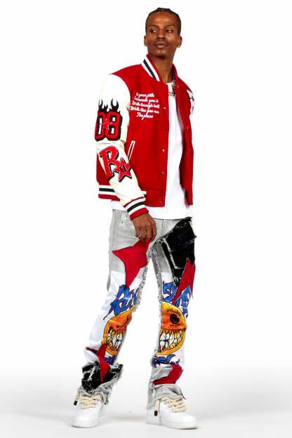 An urban stacked flare denim jean for men in light grey. Designed with organic cotton and custom detailing for the perfect streetwear style.