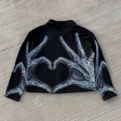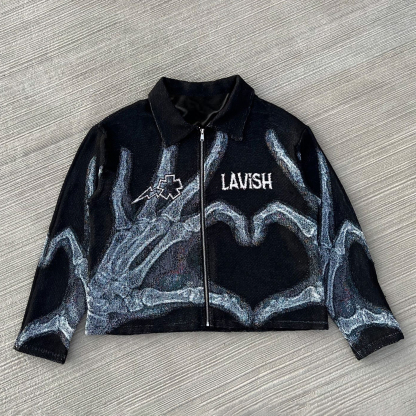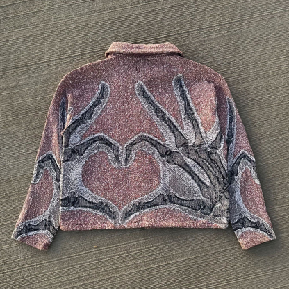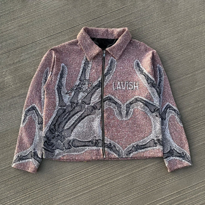 Lavish Heart Print Zipped Jacket