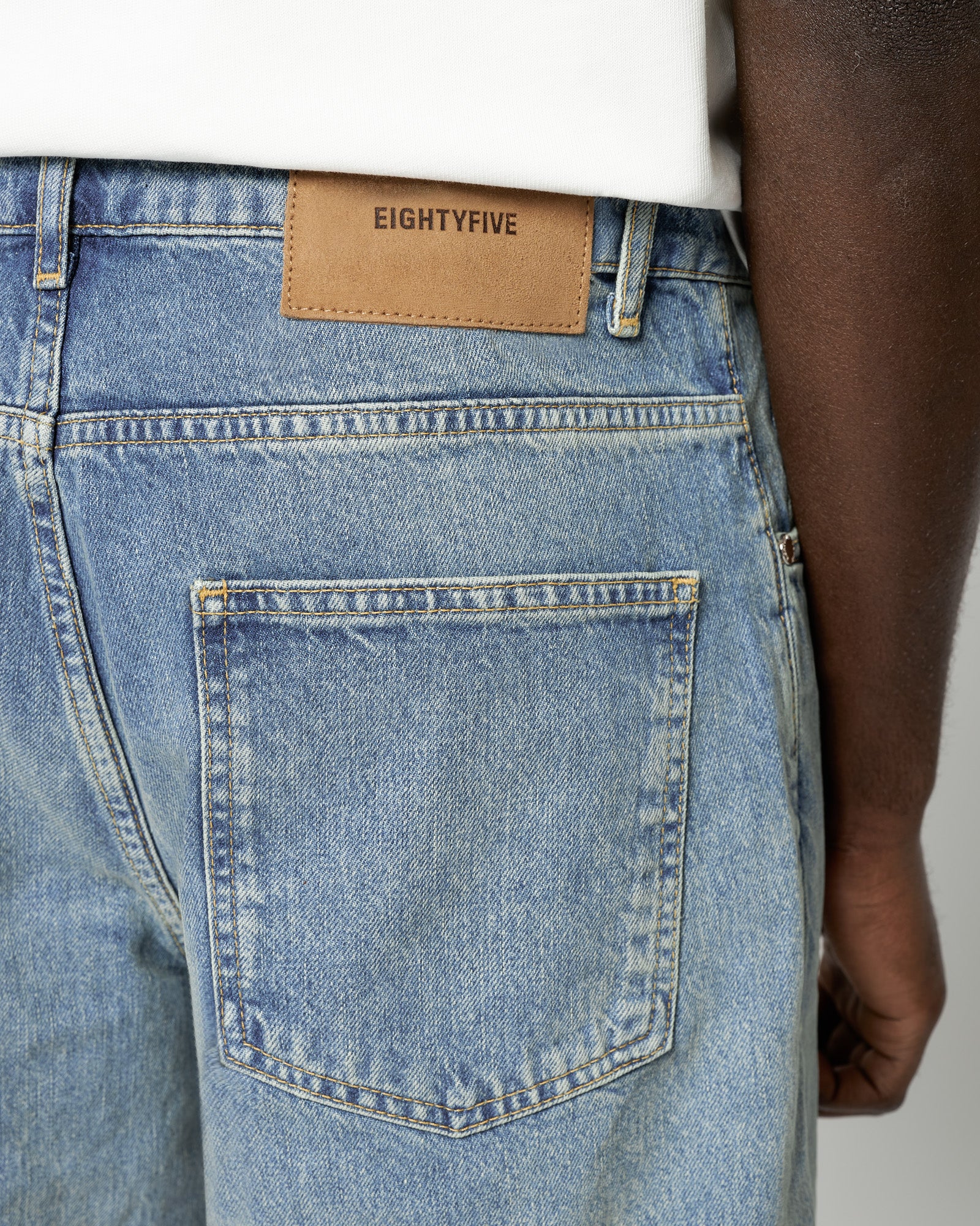 The model is 185cm tall, weighs 70kg and wears size 31