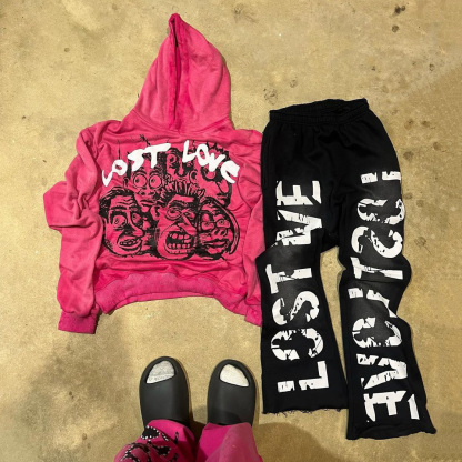 Lost Love Print Hoodie Sweatpants Two Piece Set