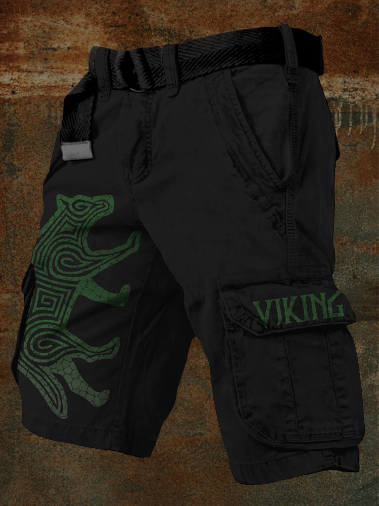 Men's Viking Cracked Wolf Vintage Cargo Shorts
