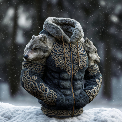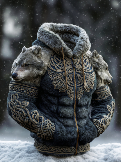 Men's Wild Wolf Viking Celtic Muscle Plush Full Zip Hoodie