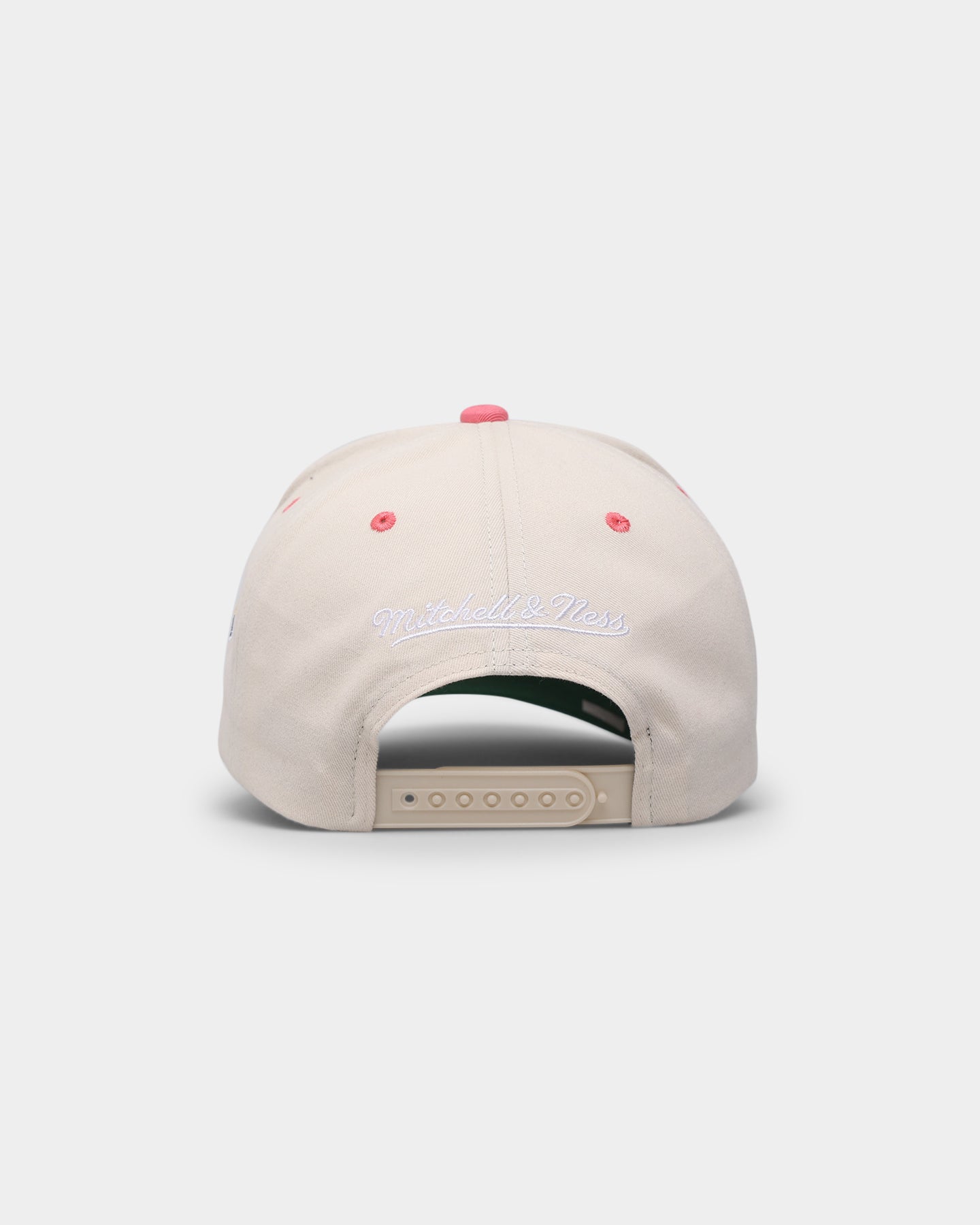 The "Cream Team Script" Pro Crown Snapback is a beautifully executed cream hat with an OG team coloured script & brim, giving that nostalgic & old skool look & feel. An additional team logo pops on the left side. - World exclusive "Cream Team Script" collection- Satin embroidered team script - Aditional team logo to side - Deep crown for a pronounced on head fit - Pre-curved brim / kelly green underbrim - Eyelet ventilation - Snapback adjustable closure - 6-panel - Composition: 100% brushed cotton - Colour: Cream - Style: MNMH20215