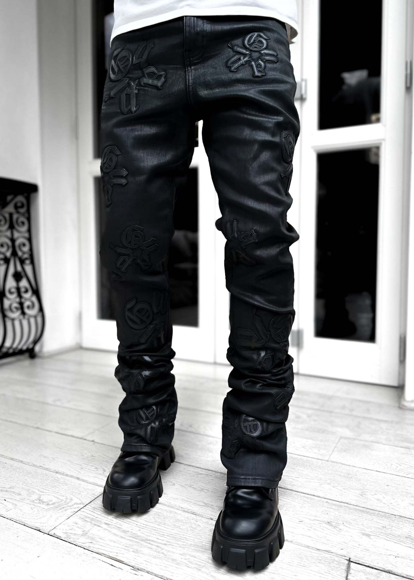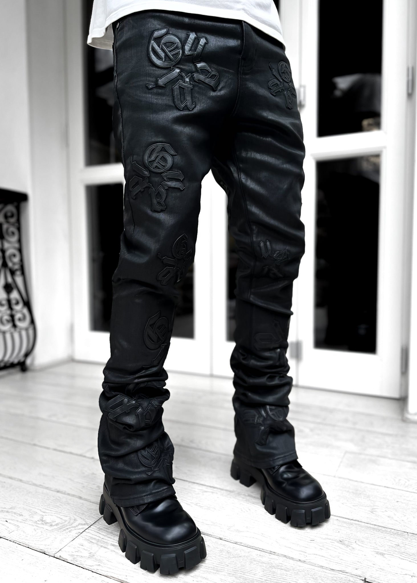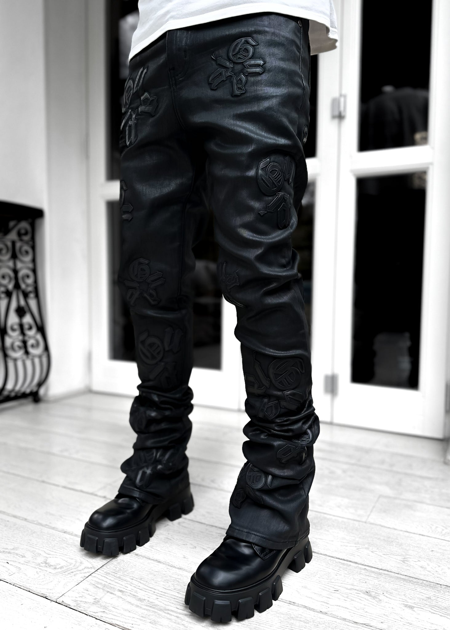 Obsidian Black Logos Stacked Denim