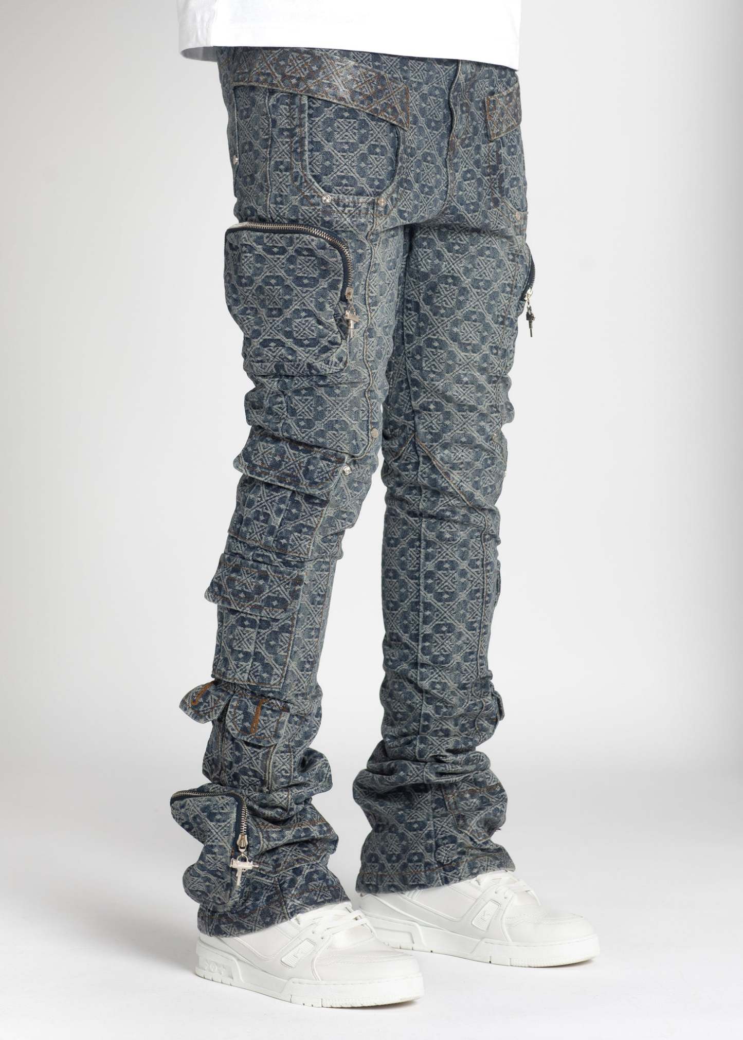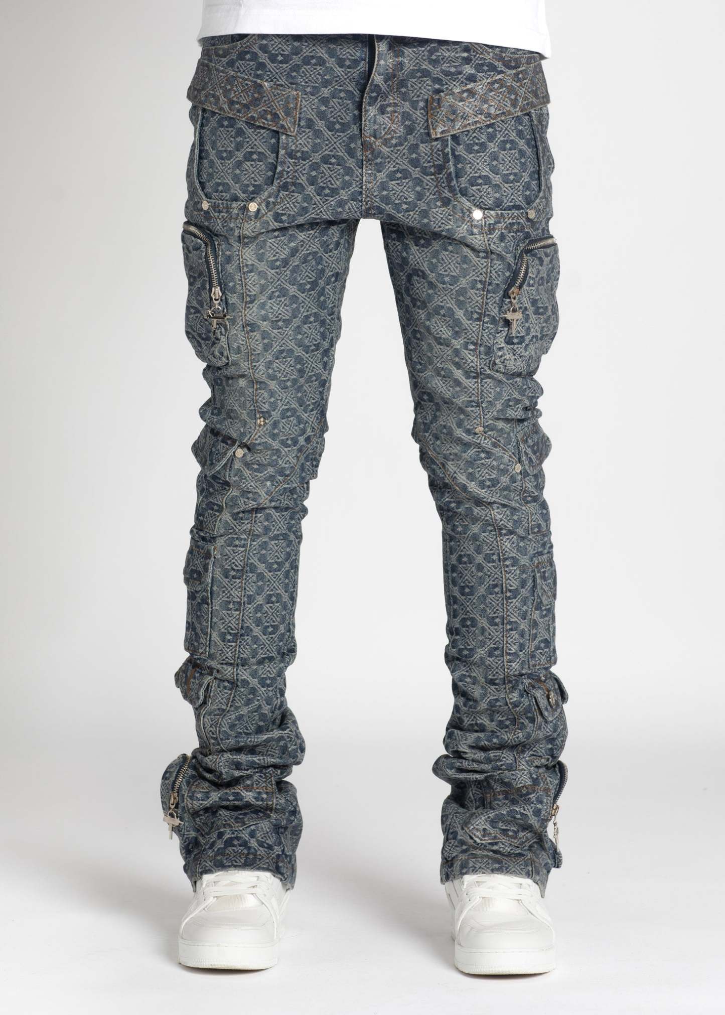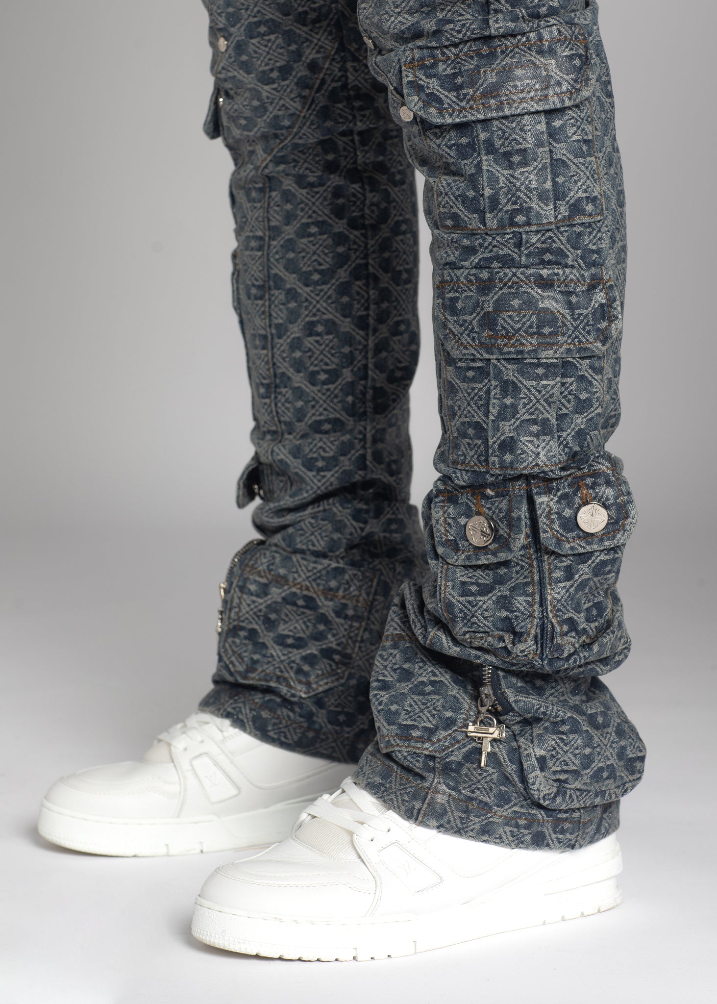 • Features ankle pockets and belt loops.