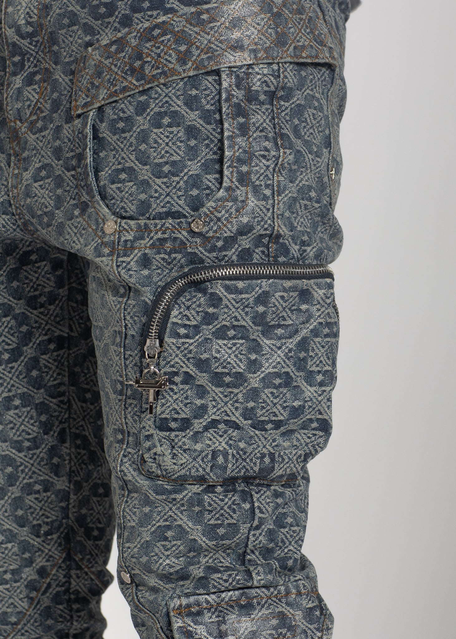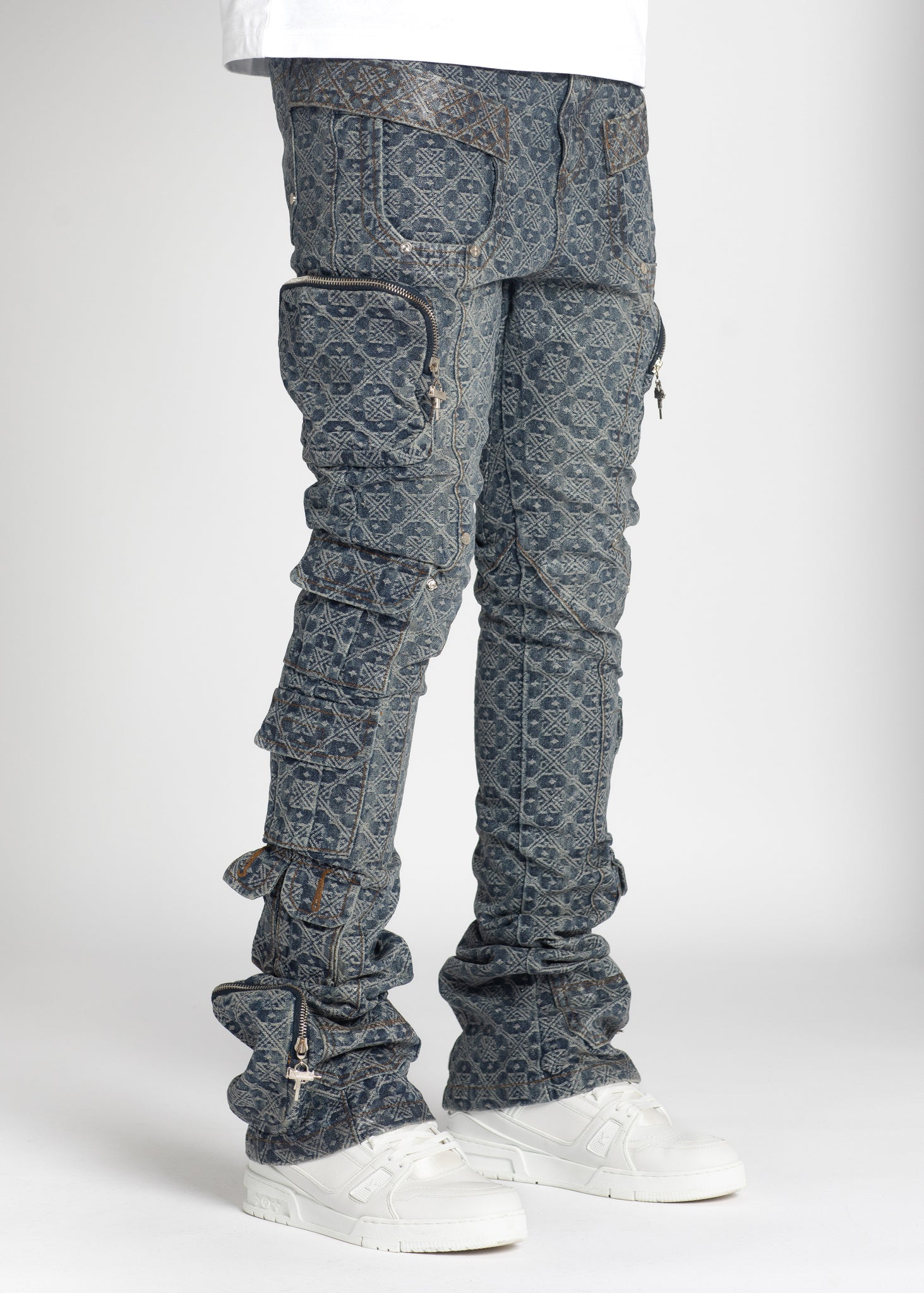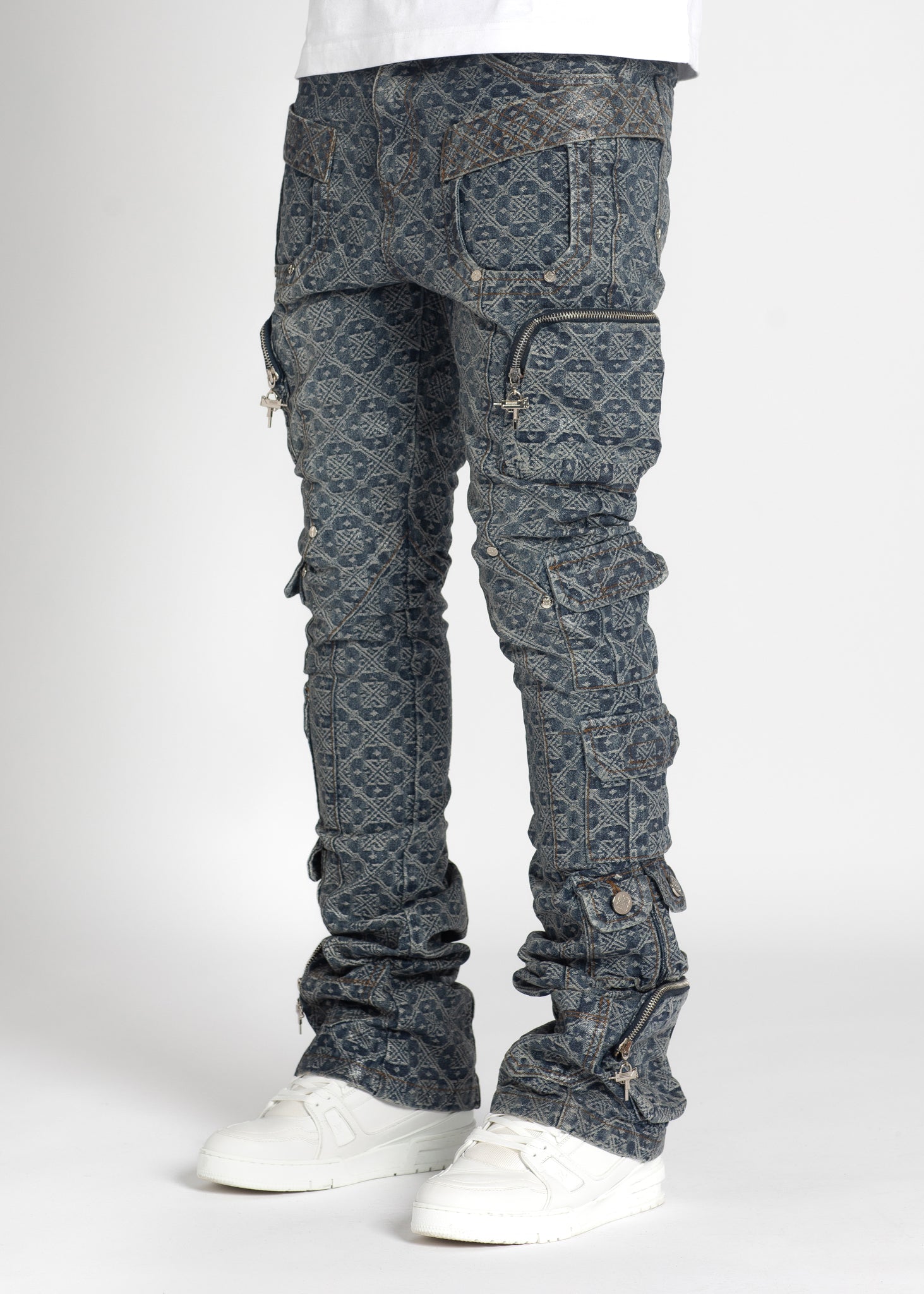 • Features ankle pockets and belt loops.