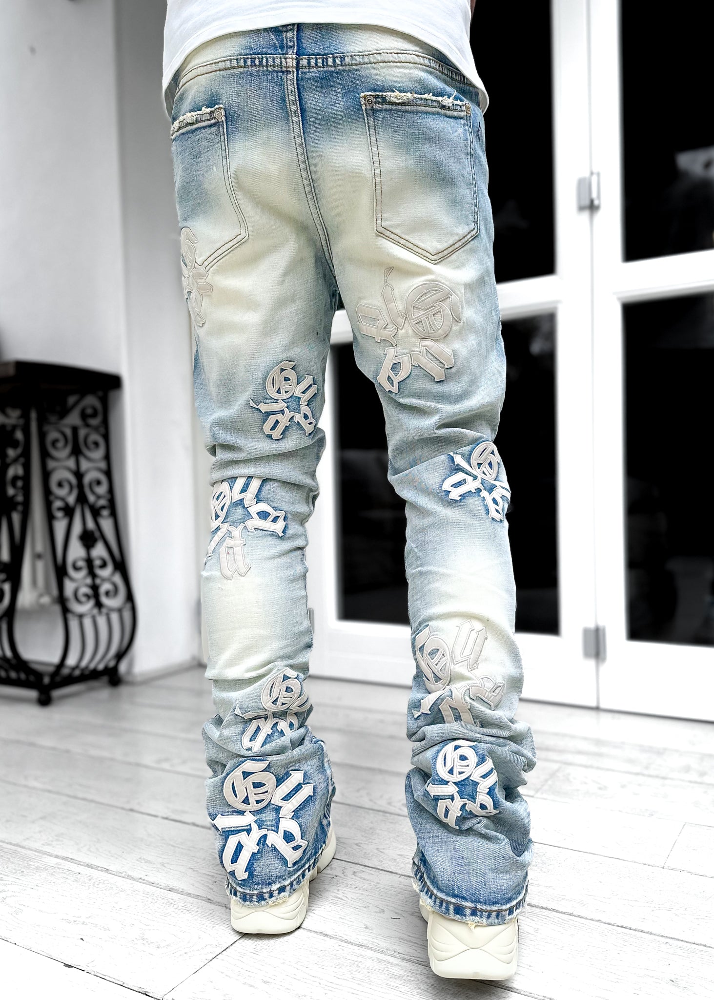 Powder Blue Logos Stacked Denim